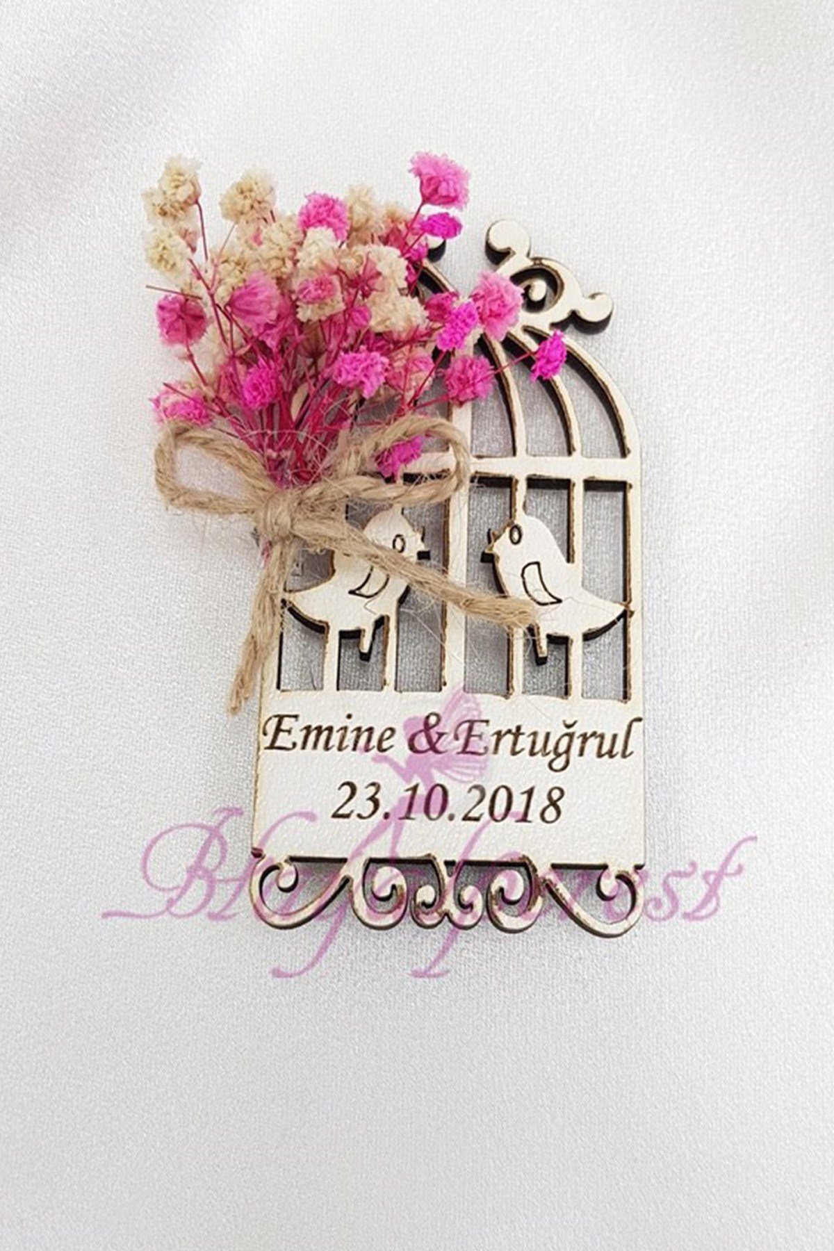 AHSAP KUŞ KAFESLİ KURU ÇİÇEKLİ NİKAH VE BEBEK ŞEKERİ MODELİ