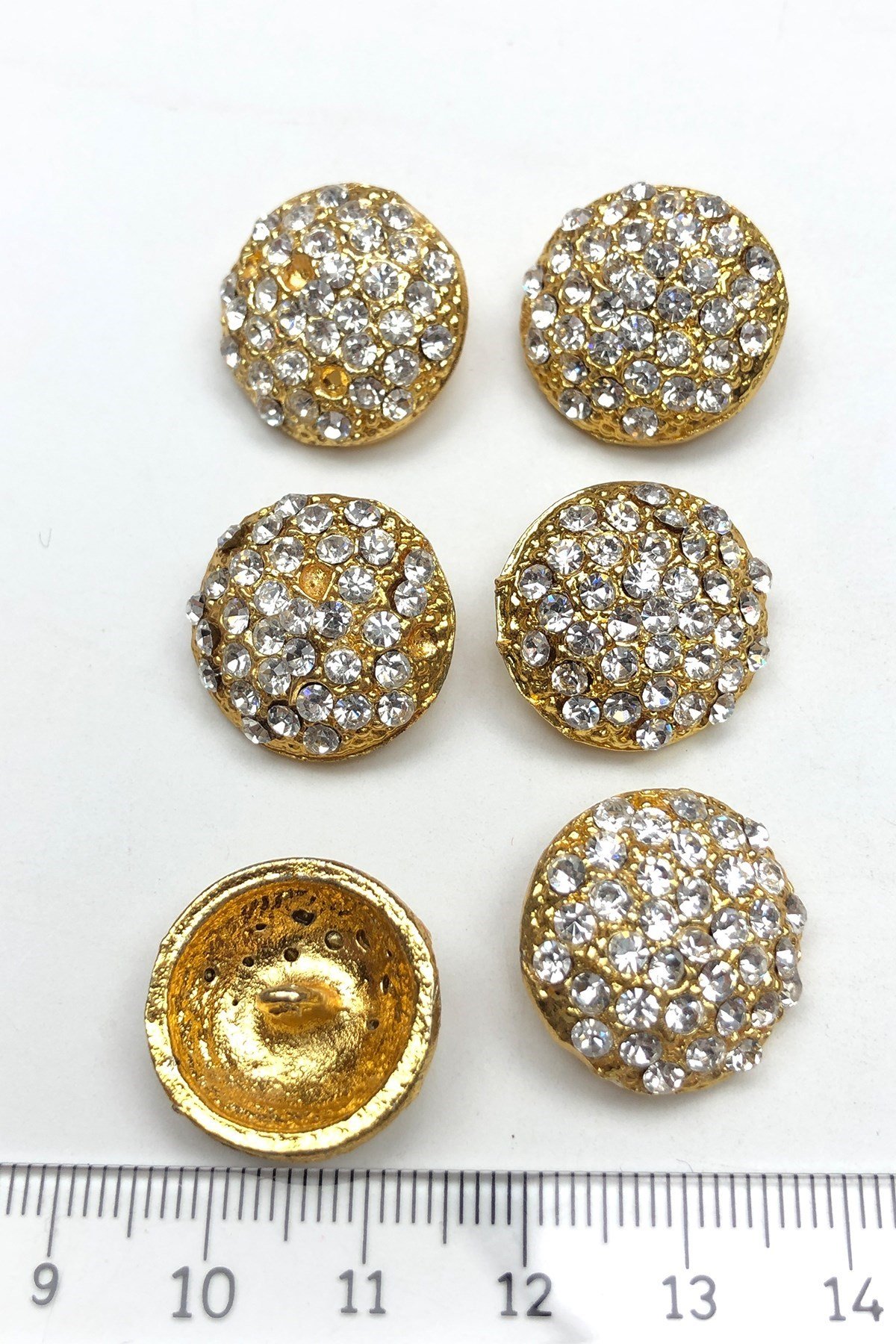 Altın Sarısı Sık Taşlı Metal Abiye Düğme (TD028)