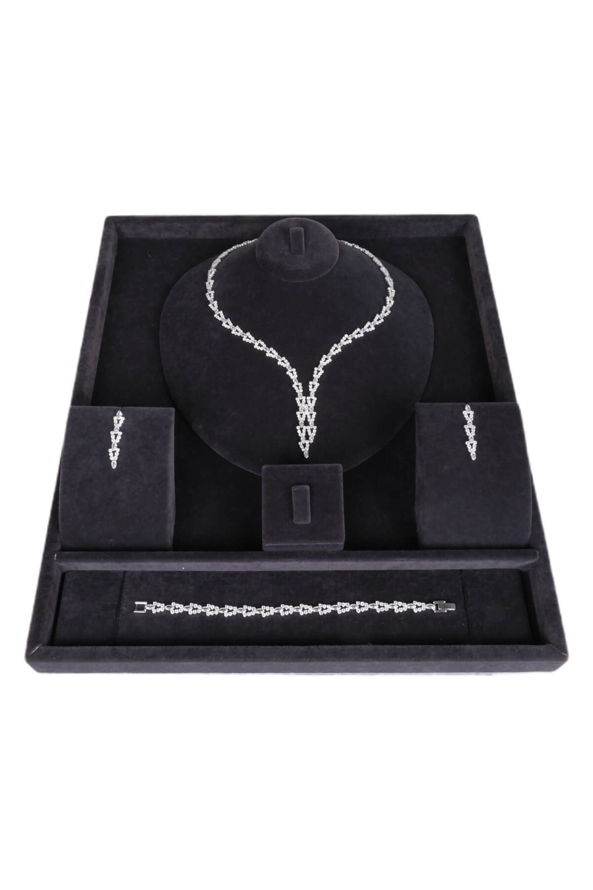 Baklava Desenli Zirkon Taşlı Kolye Küpe Bileklik Seti (ZTS0003)