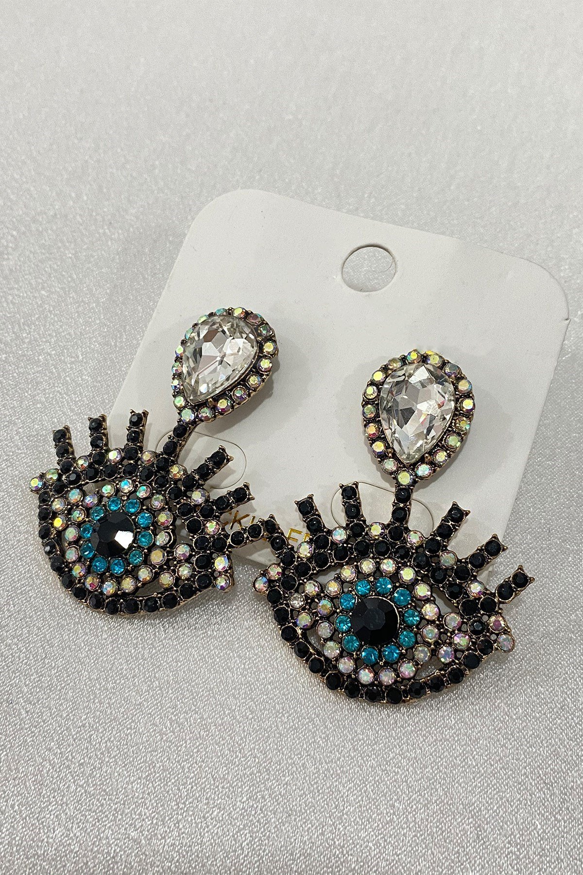 Beyaz Damla Detaylı Siyah Kirpikli Göz Küpe