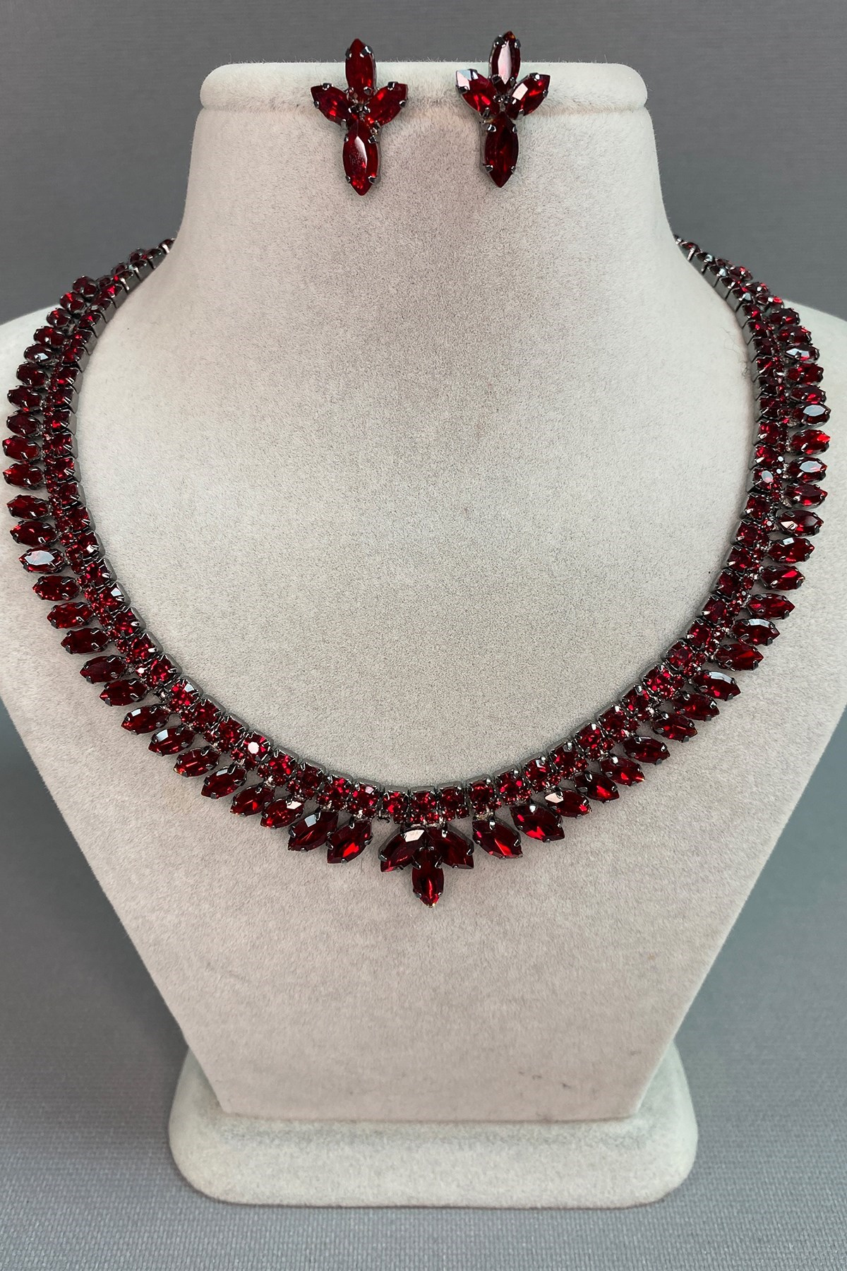 Bordo Lenin Kristal Taşlı Kolye Küpe Seti (KVTS025)