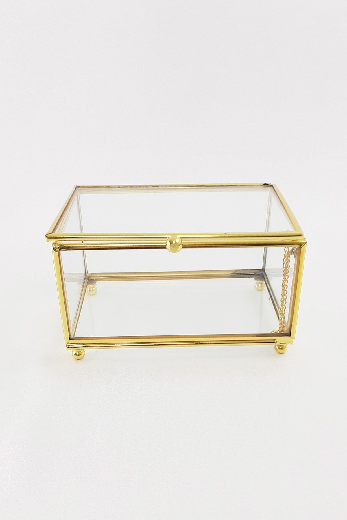 Cam Gold Diktörtgen Takı Nişan Aksesuar Kutusu XS