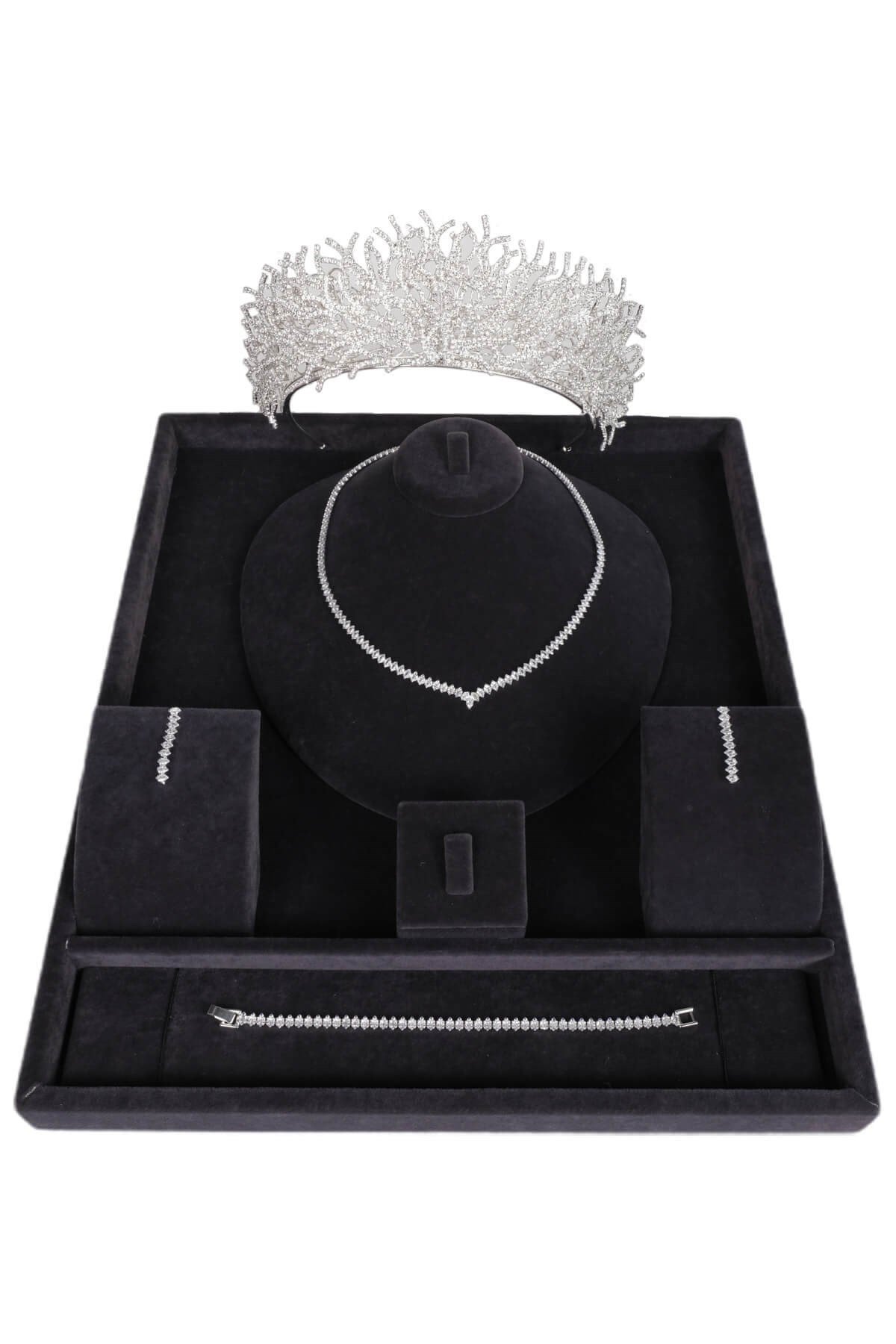 Canis Gelin Tacı ve Zirkon Taşlı Kolye Küpe Bileklik Seti (ZTS0027)
