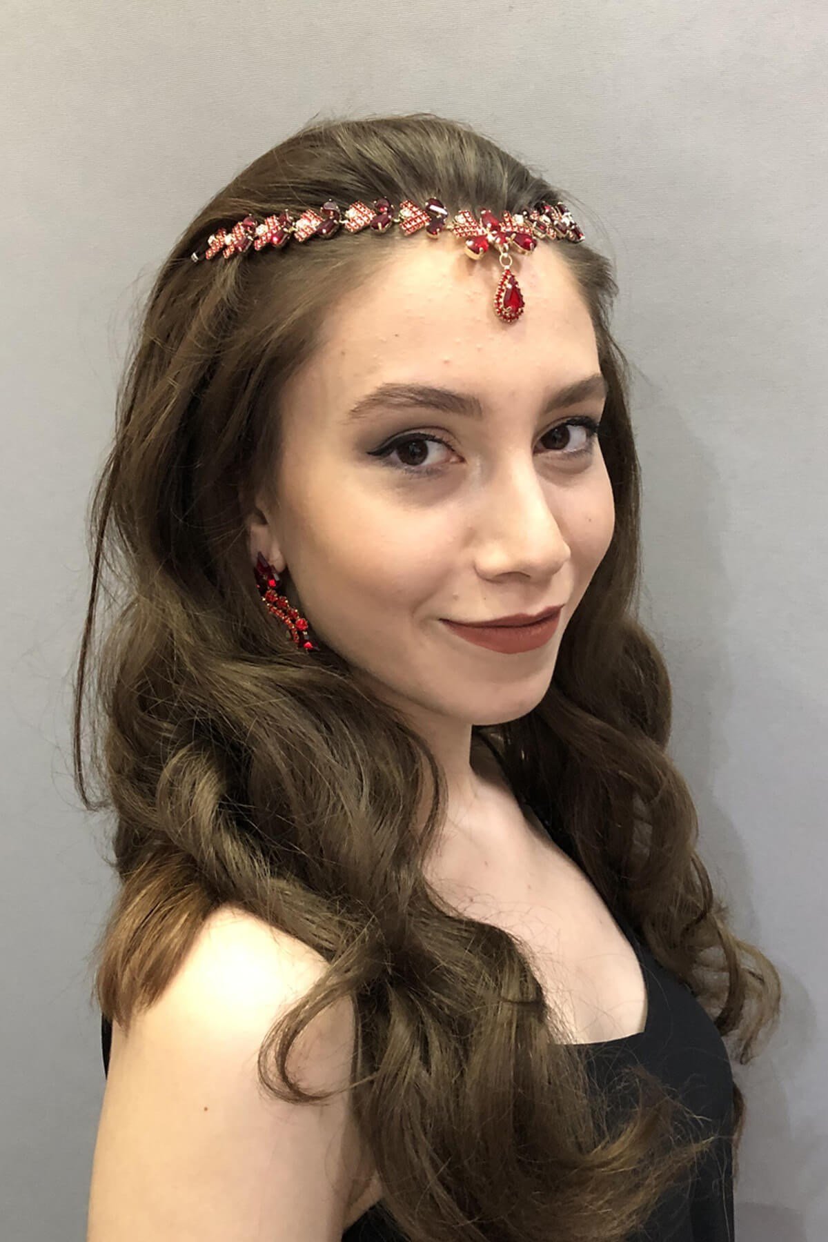 Corvi Kırmızı Bordo Alınlık Saç Aksesuarı ve Küpe (TAC-392)