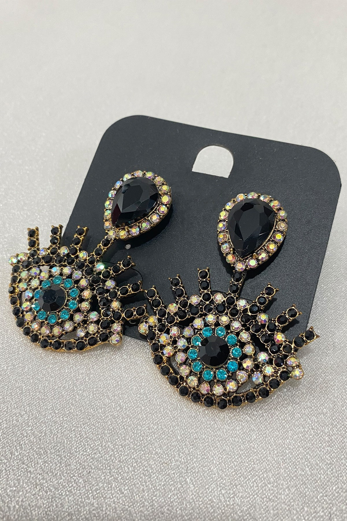 Damla Siyah Beyaz Mavi Kirpikli Göz Küpe (TCK328)