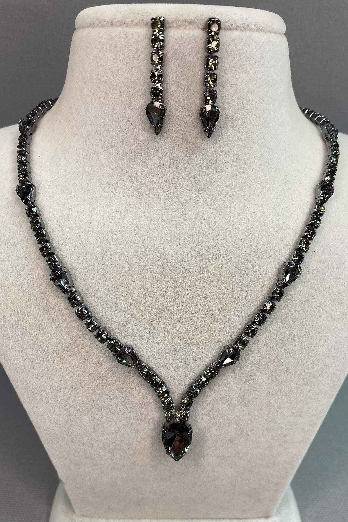 Füme Vega Kristal Taşlı Kolye Küpe Seti (KVTS034)