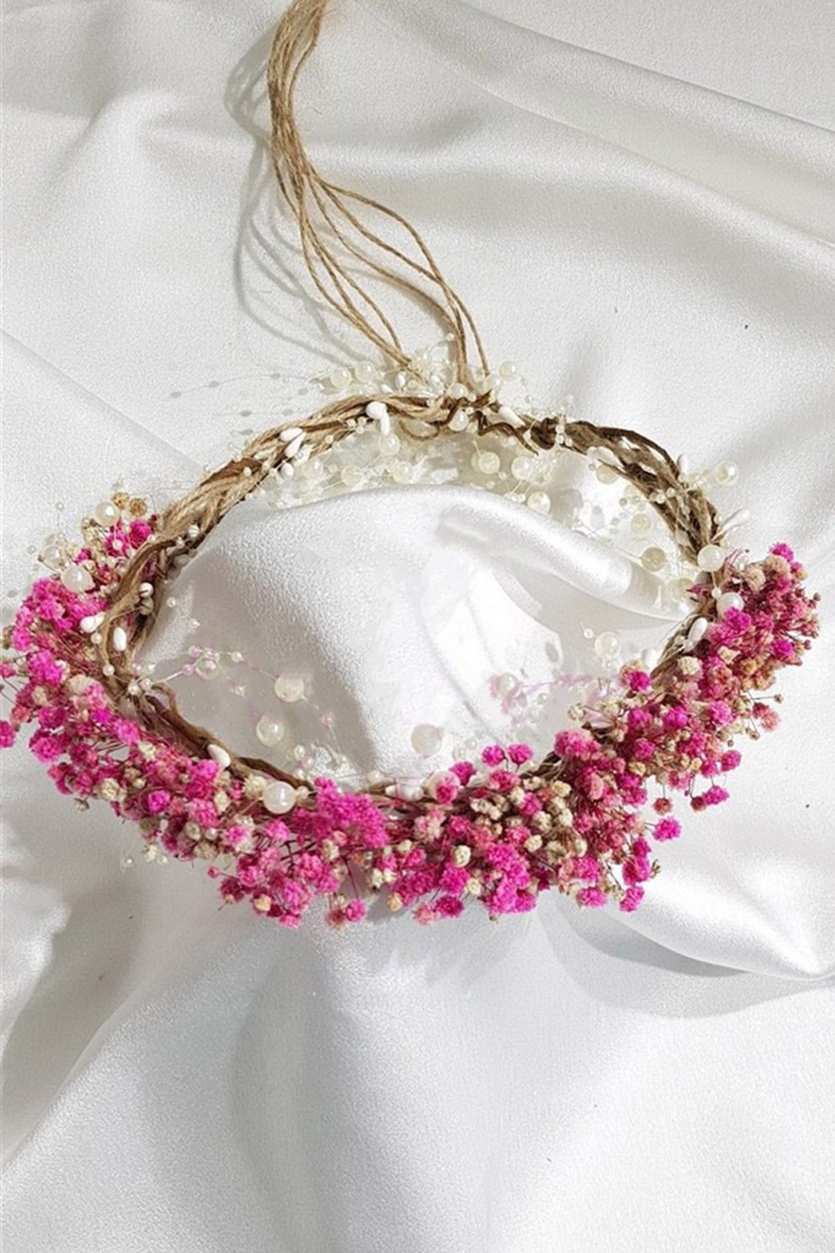 KURU ÇİÇEKLİ İNCİLİ VE HASIRLI TAÇLAR