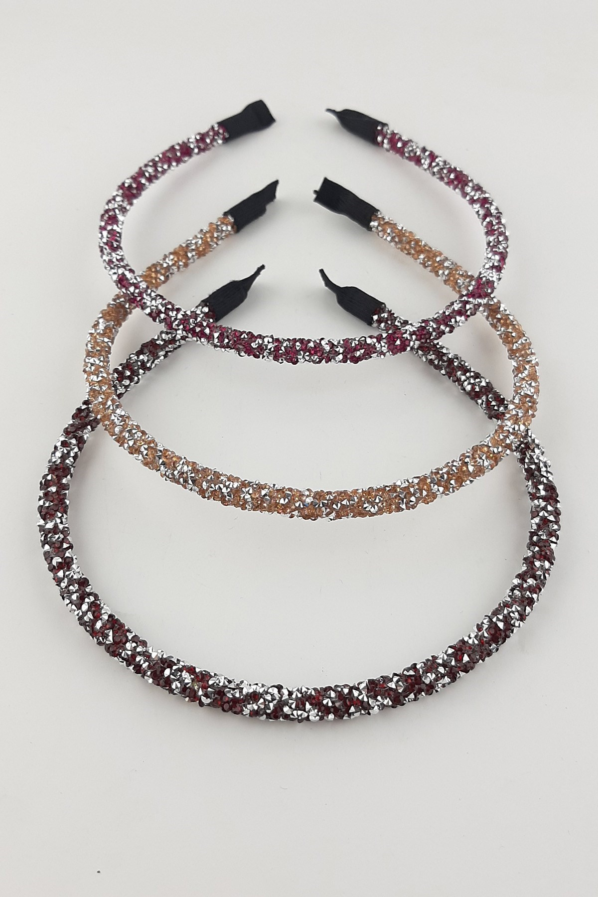 Fuşya Somon Bordo 3'lü Taşlı Taç