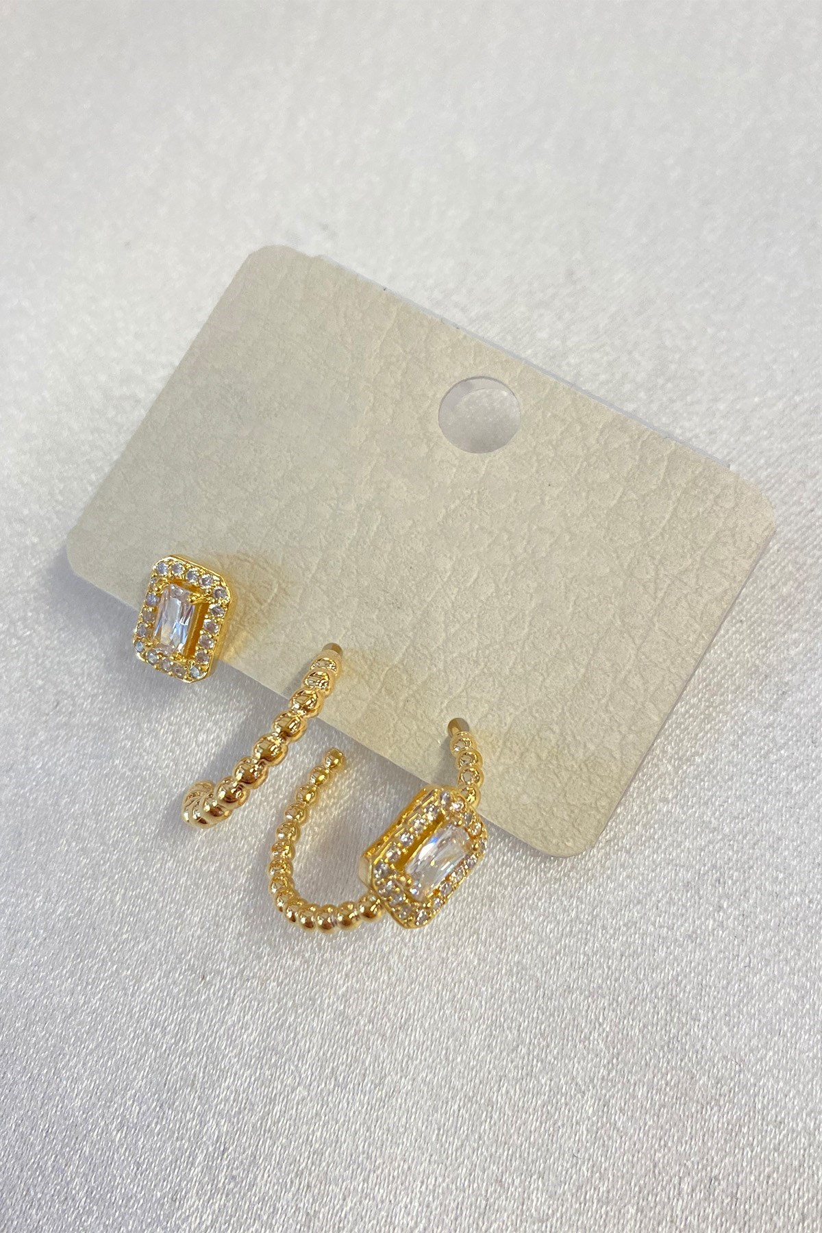 Gold Kare Zirkon Taşlı Çoklu Küpe
