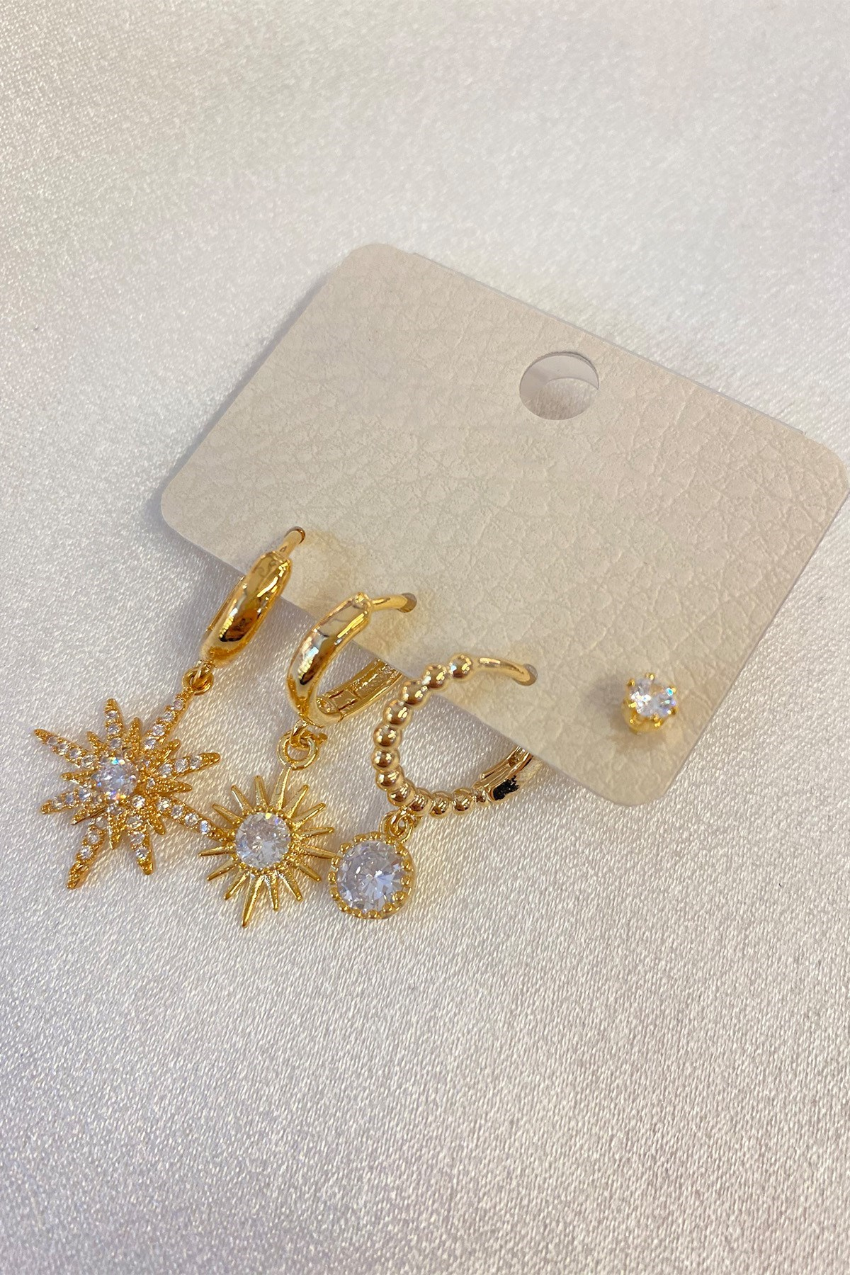 Gold Kuzey Yıldız Taşlı Zincir Çoklu Küpe (TCK295)