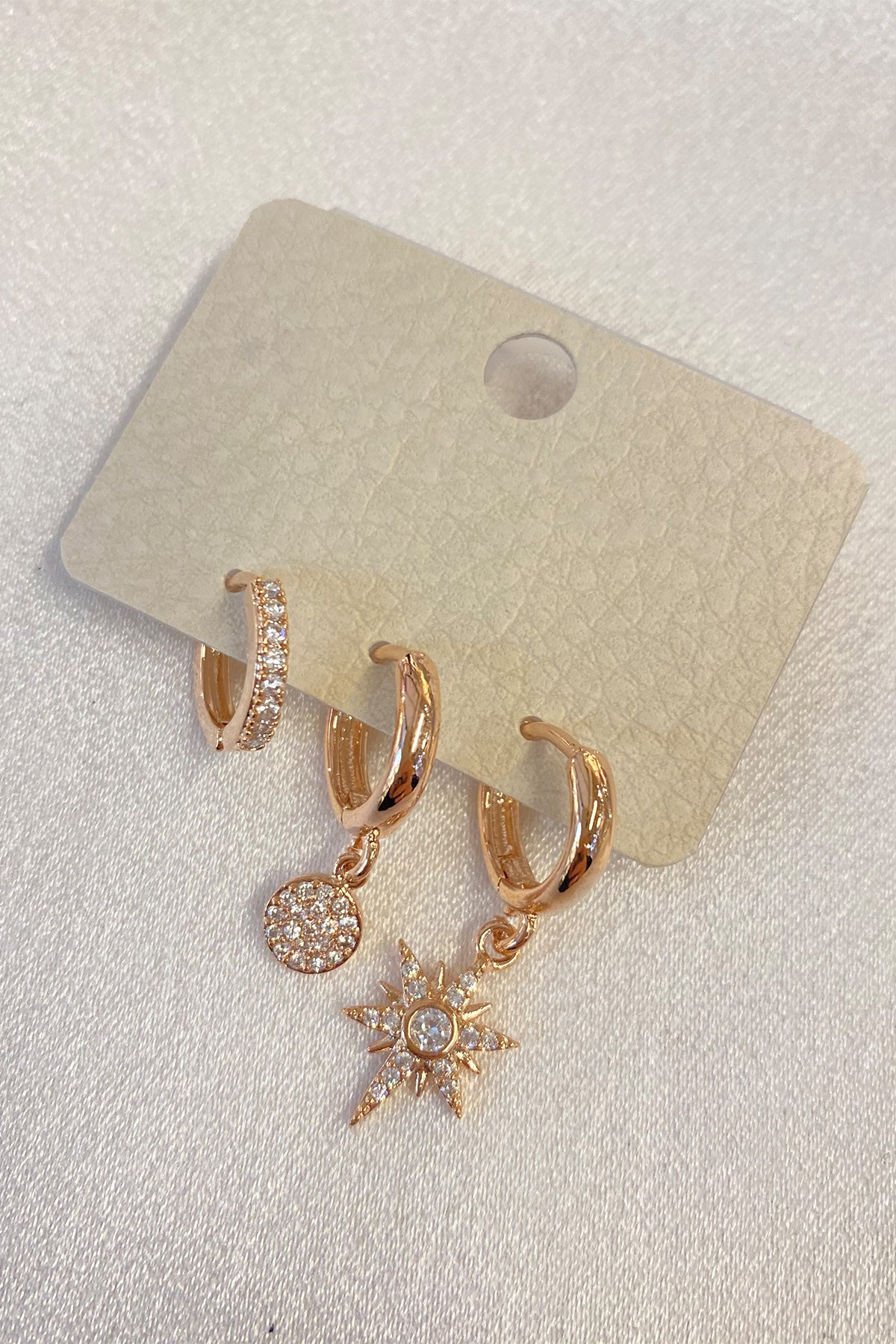 Gold Yuvarlak Taşlı Güneş Çoklu Küpe