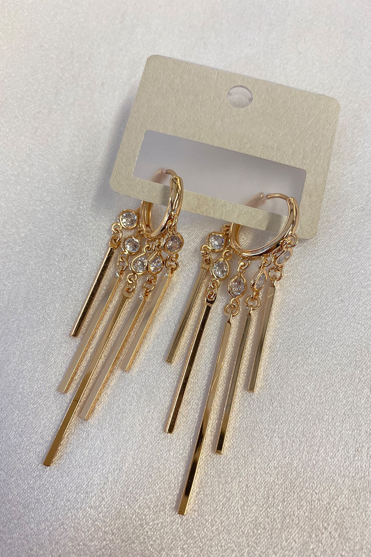 Gold Zirkon Taşlı Uzun Çubuk Sallantılı Küpe