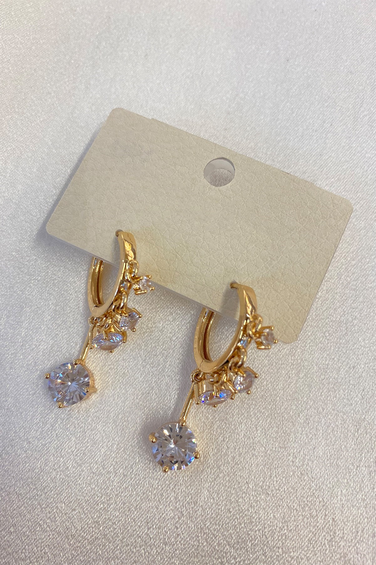Gold Zirkon Taşlı Yuvarlak Küpe