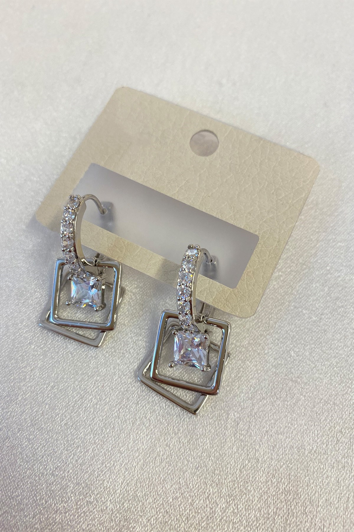 Gümüş Kare Zirkon Taşlı Küpe (TCK269)