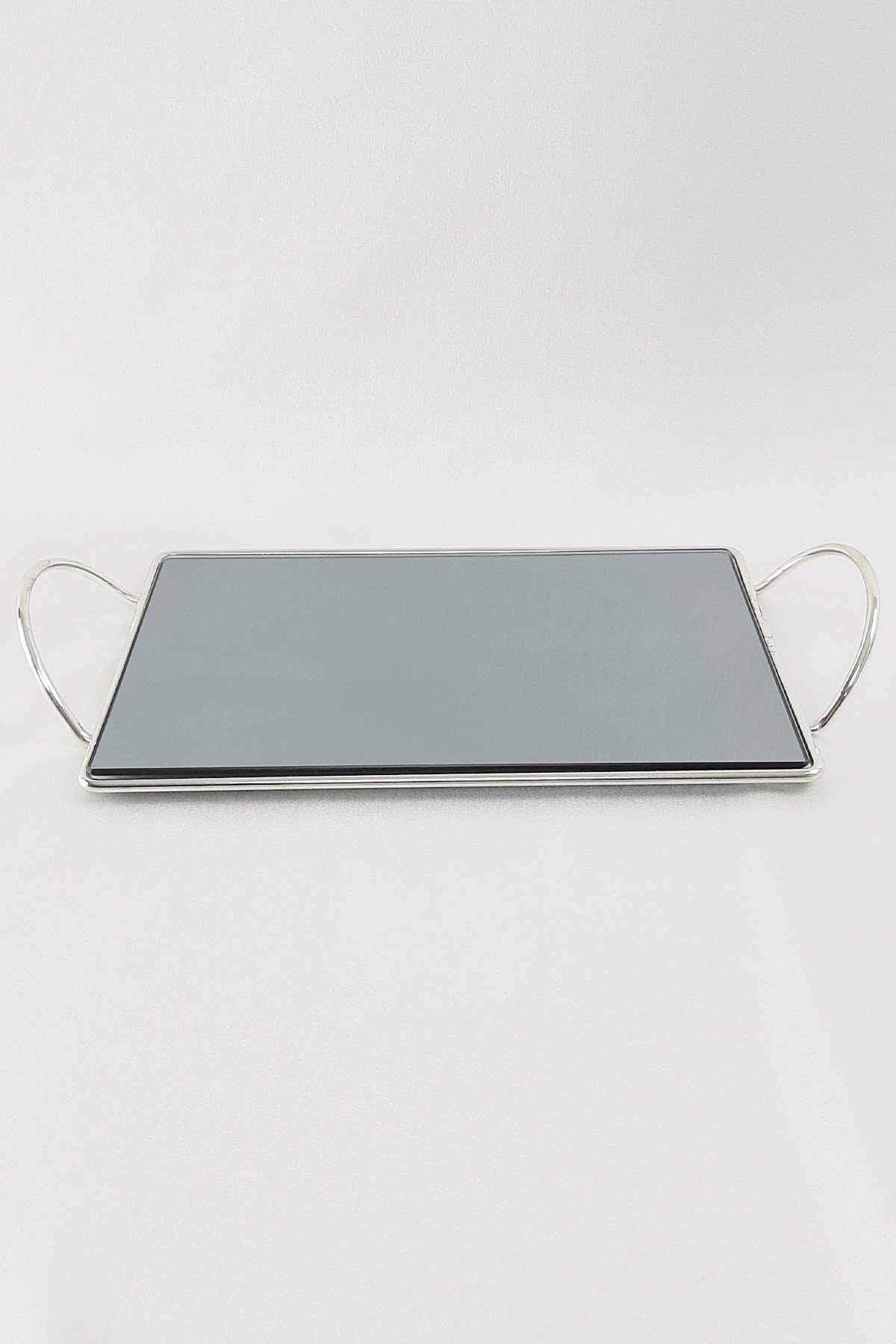 Gümüş Kulplu Dikdörtgen Söz Nişan Tepsisi Birinci Sınıf İşçilik İle İmal Edilmiştir. En:28cm Boy:18cm Yükseklik:2cm 3mm Cam Ayna ve Prinç Kullanılarak Yapılmıştır Sıvı Teması İçin Uygun Değildir.
