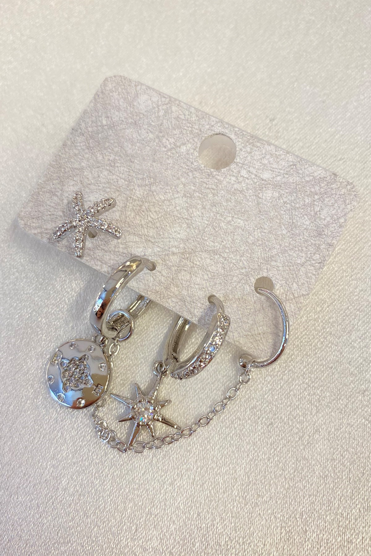 Gümüş Kuzey Yıdızlı Taşlı Zincir Çoklu Küpe (TCK303)