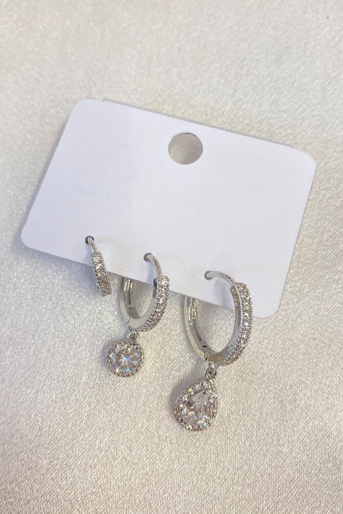 Gümüş Renk Damla Yuvarlak Taşlı Küpe