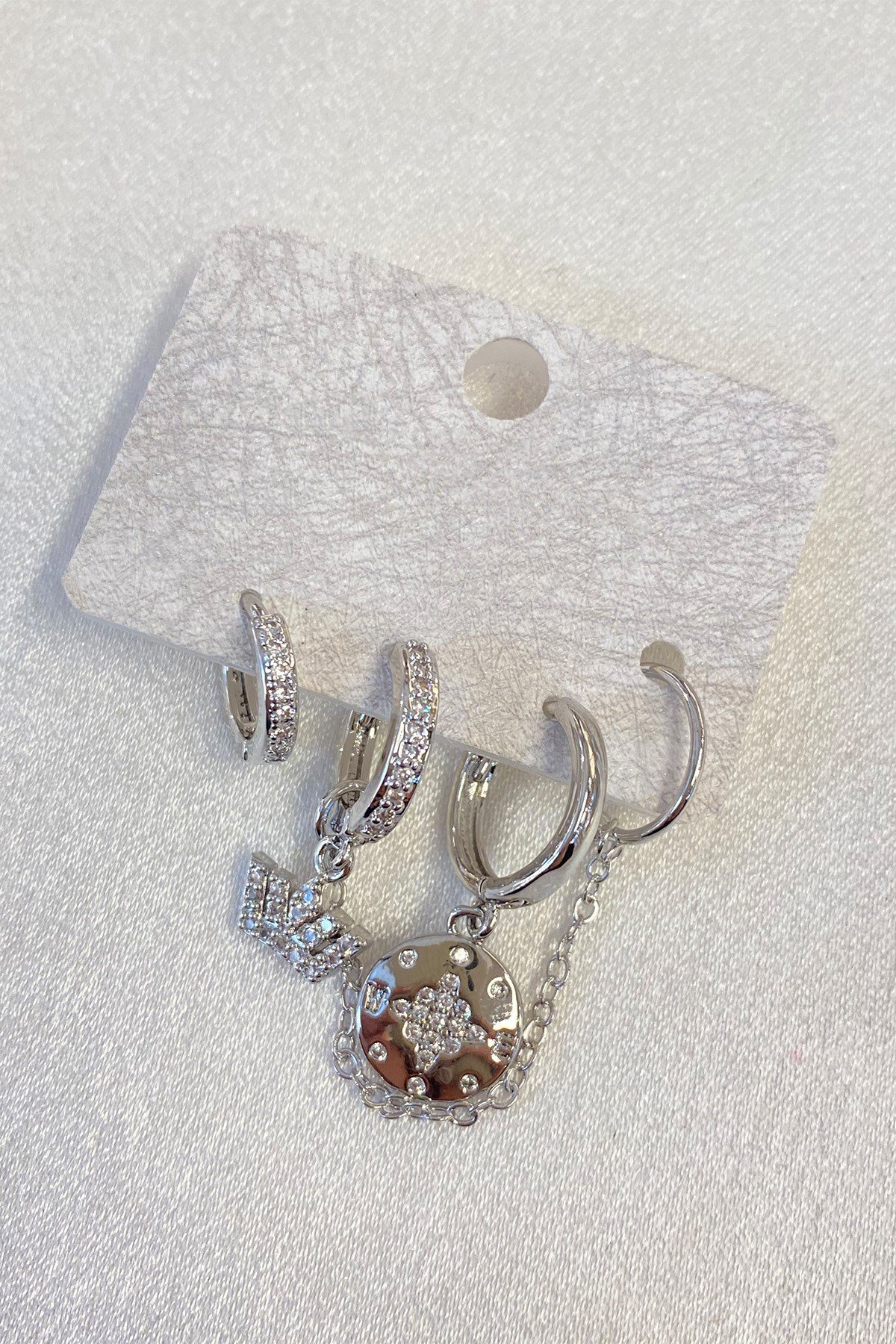 Gümüş Renk Harfli Yuvarlak Taşlı Çoklu Küpe (TCK308)