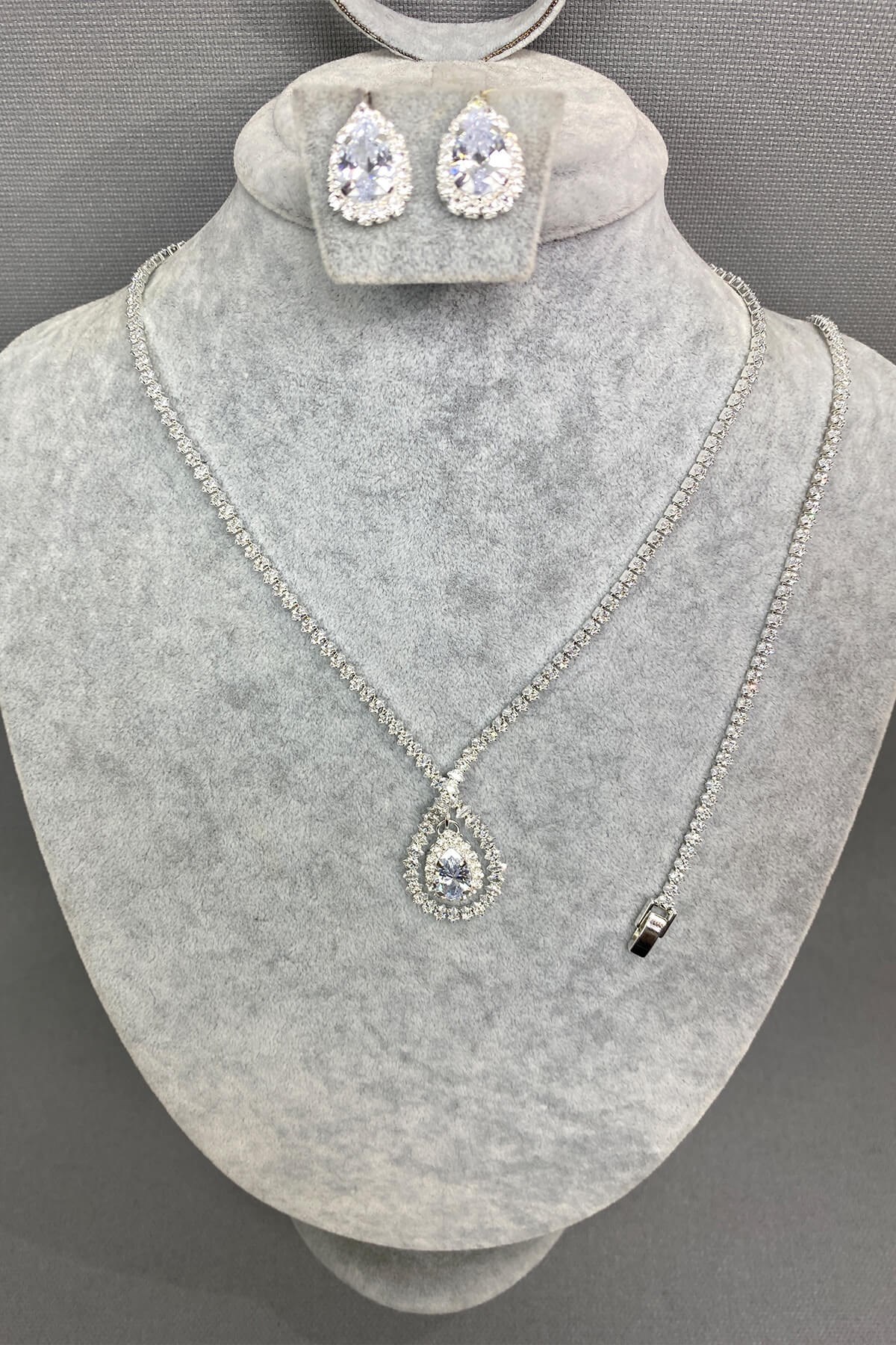 Gümüş Renk Supple Zirkon Taşlı Kolye Bileklik ve Küpe Seti (ZK009)