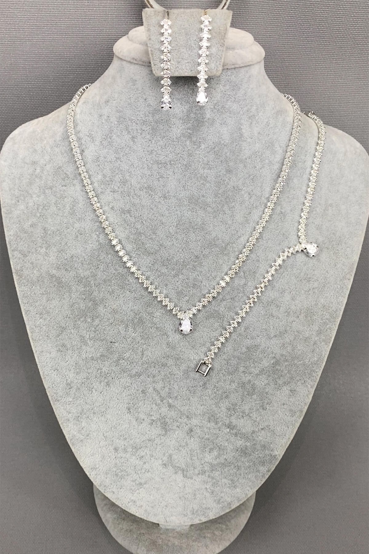 Gümüş Renk Taras Zirkon Taşlı Kolye Bileklik ve Küpe Seti (ZK004)