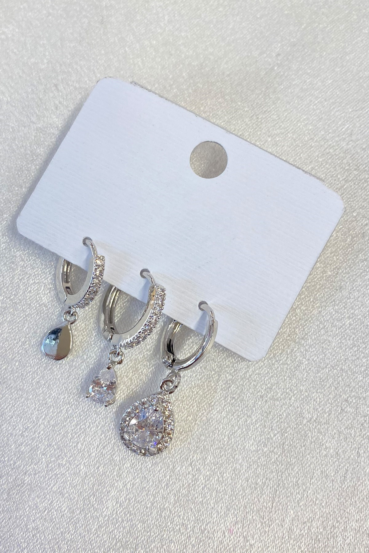 Gümüş Renk Üçgen Damla Detaylı Çoklu Küpe (TCK306)