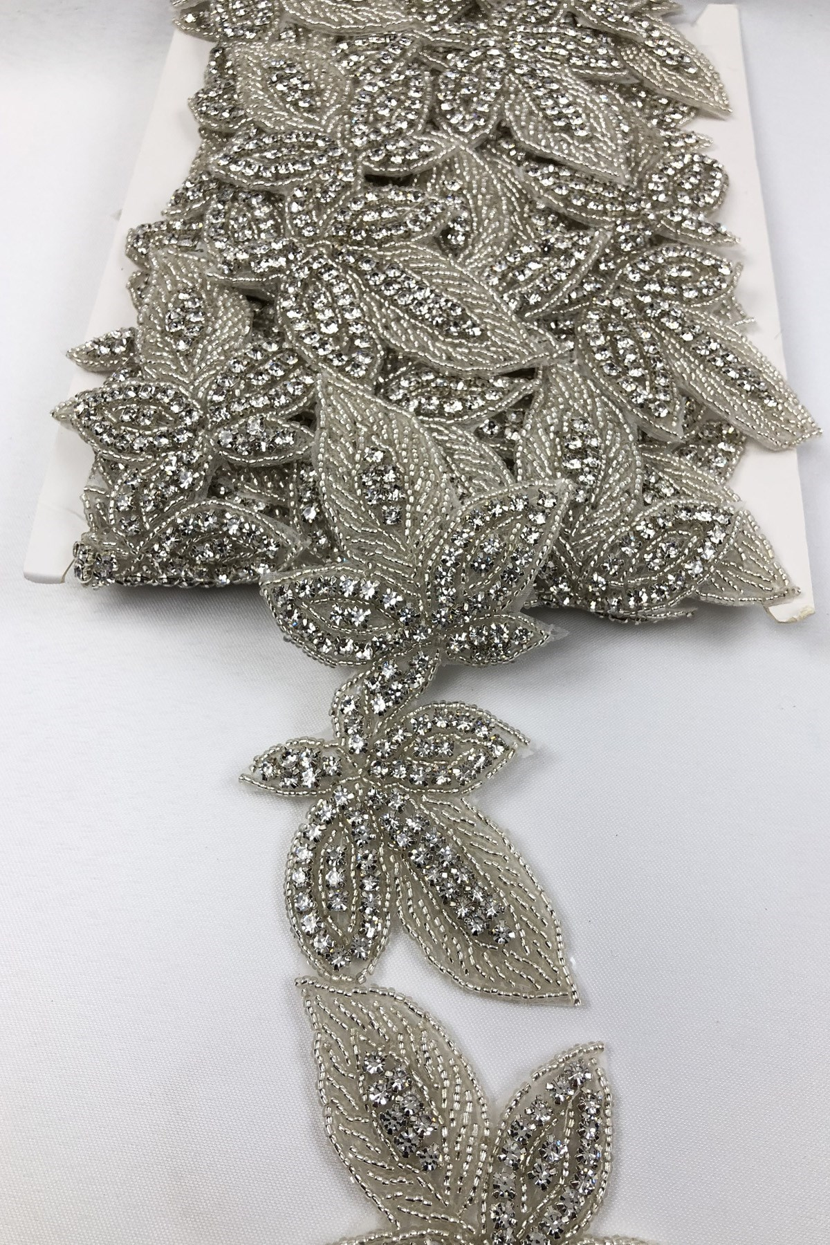 Gümüş Renk Yaprak Desenli Ütüyle Yapışan Taşlı Şerit (TSA-108)