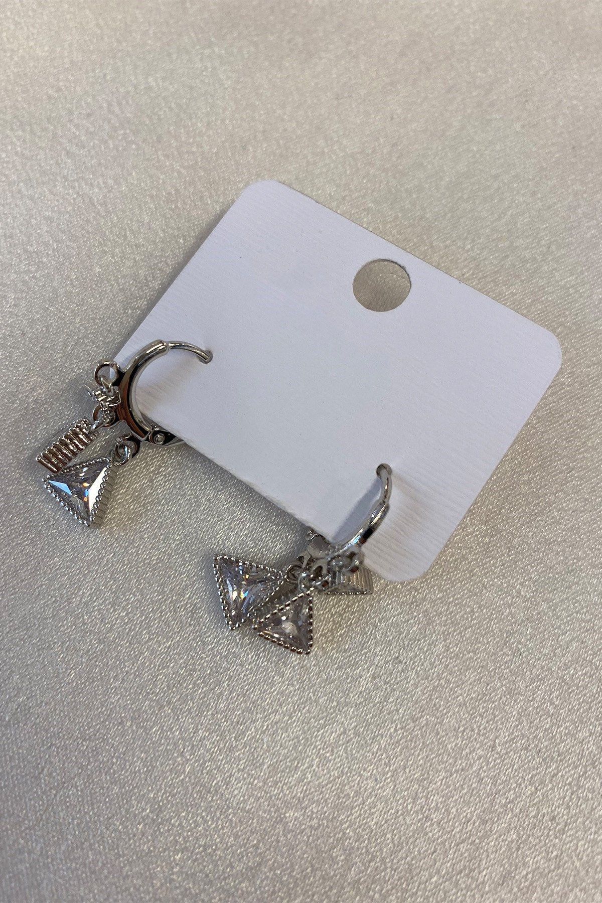 Gümüş Üçgen Zirkon Taşlı Küpe
