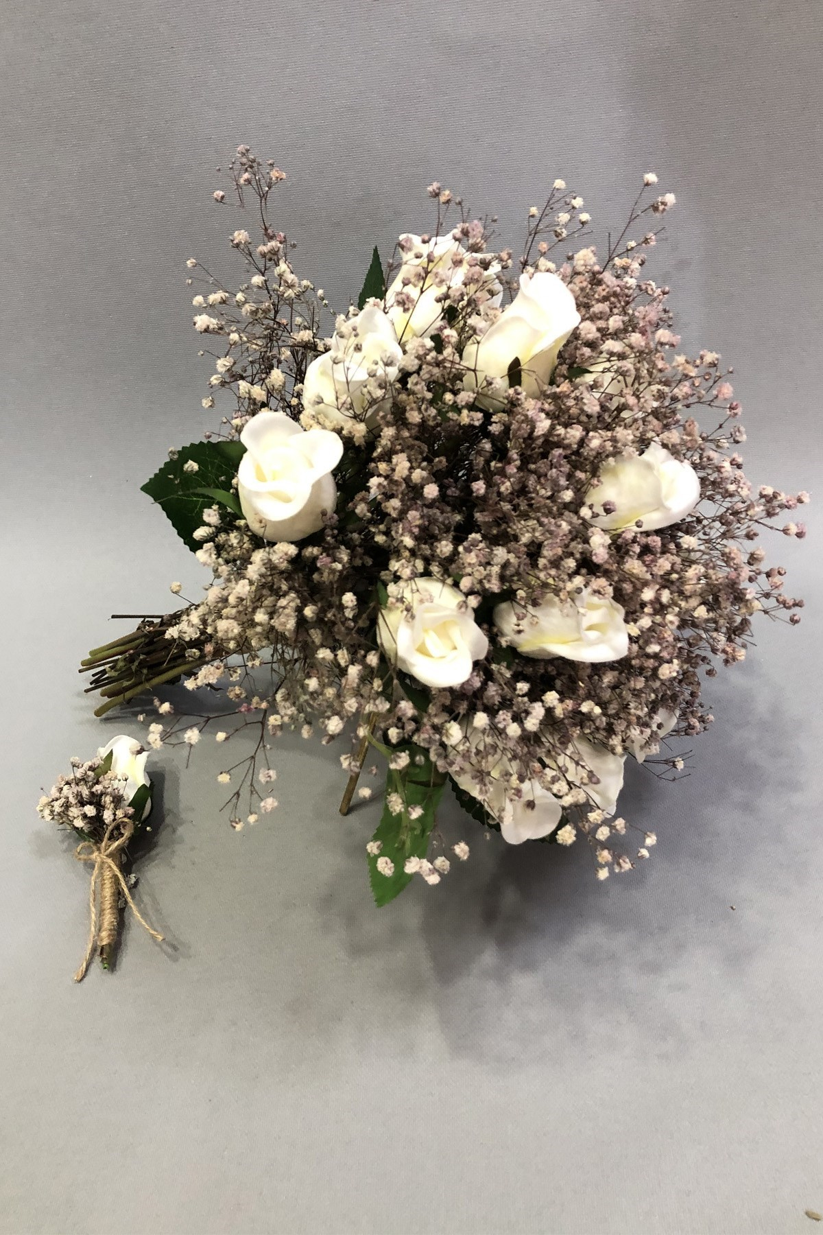 Islak Beyaz Gül Mor ve Beyaz Cipsolu Gelin Buketi Doğal Görünümlü Yapay Gelin Buketlerimizin Arasına Şoklanıp Kurutulmuş Kuru Çiçeklerle Yaptığımız Kombin Gelin Buketlerimiz Dogal Görünümü İle Öne Çıkmaktadır.Düğün Sezonunda ve Dış Çekimlerde En Çok Tercih Edilen Buketlerimizdir. Dilerseniz Daha Sonrada Evinizde Dekor Olarak Kullanabileceğiniz Buketlerimizi Uzun Süre Saklayabilirsiniz. Not: Dilerseniz Renk ve Model Değişikliğini Sizin Tercihinize Göre Tanzim Edebiliriz. Ölçüleri: 30 Cm X 30 Cm