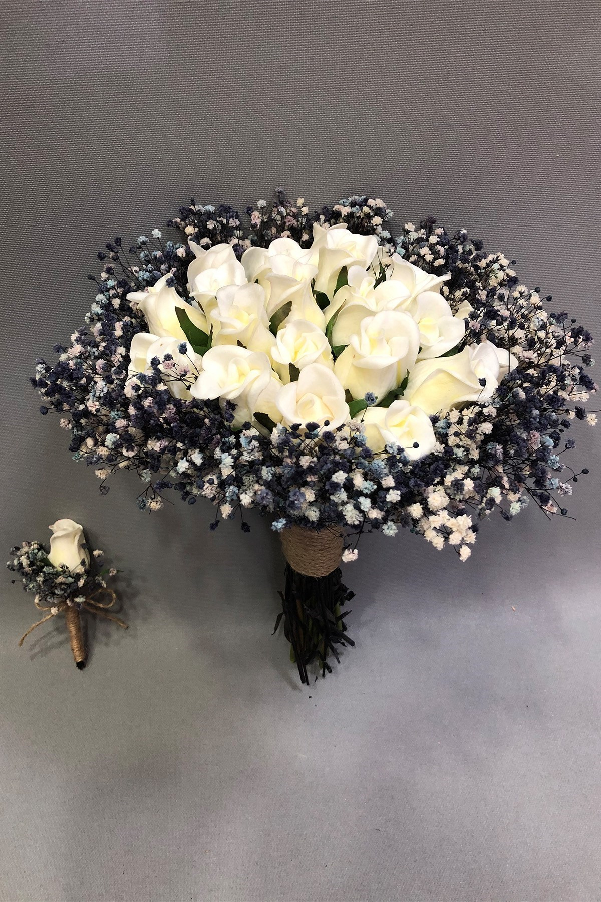 Islak Beyaz Gül ve Renkli Cipsolu Gelin Buketi Doğal Görünümlü Yapay Gelin Buketlerimizin Arasına Şoklanıp Kurutulmuş Kuru Çiçeklerle Yaptığımız Kombin Gelin Buketlerimiz Dogal Görünümü İle Öne Çıkmaktadır.Düğün Sezonunda ve Dış Çekimlerde En Çok Tercih Edilen Buketlerimizdir. Dilerseniz Daha Sonrada Evinizde Dekor Olarak Kullanabileceğiniz Buketlerimizi Uzun Süre Saklayabilirsiniz. Not: Dilerseniz Renk ve Model Değişikliğini Sizin Tercihinize Göre Tanzim Edebiliriz. Ölçüleri: 30 Cm X 30 Cm