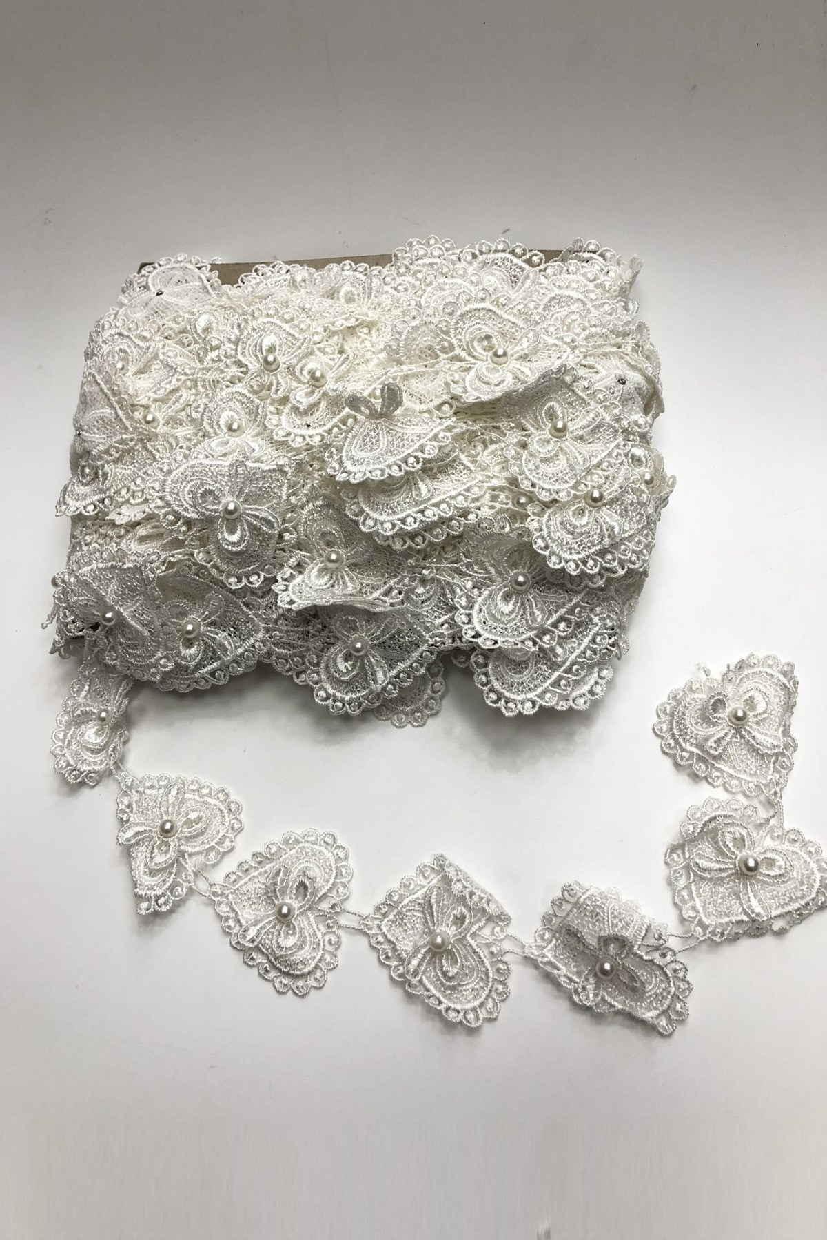 Kırık Beyaz 3 Boyutlu Kalp Desenli Şerit (SACS-020)