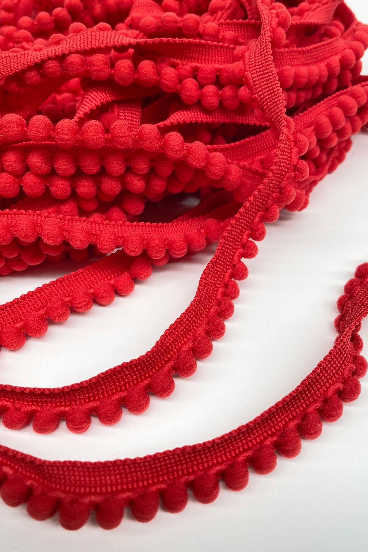 Kırmızı Sık Küçük İnce Ponpon Şerit
