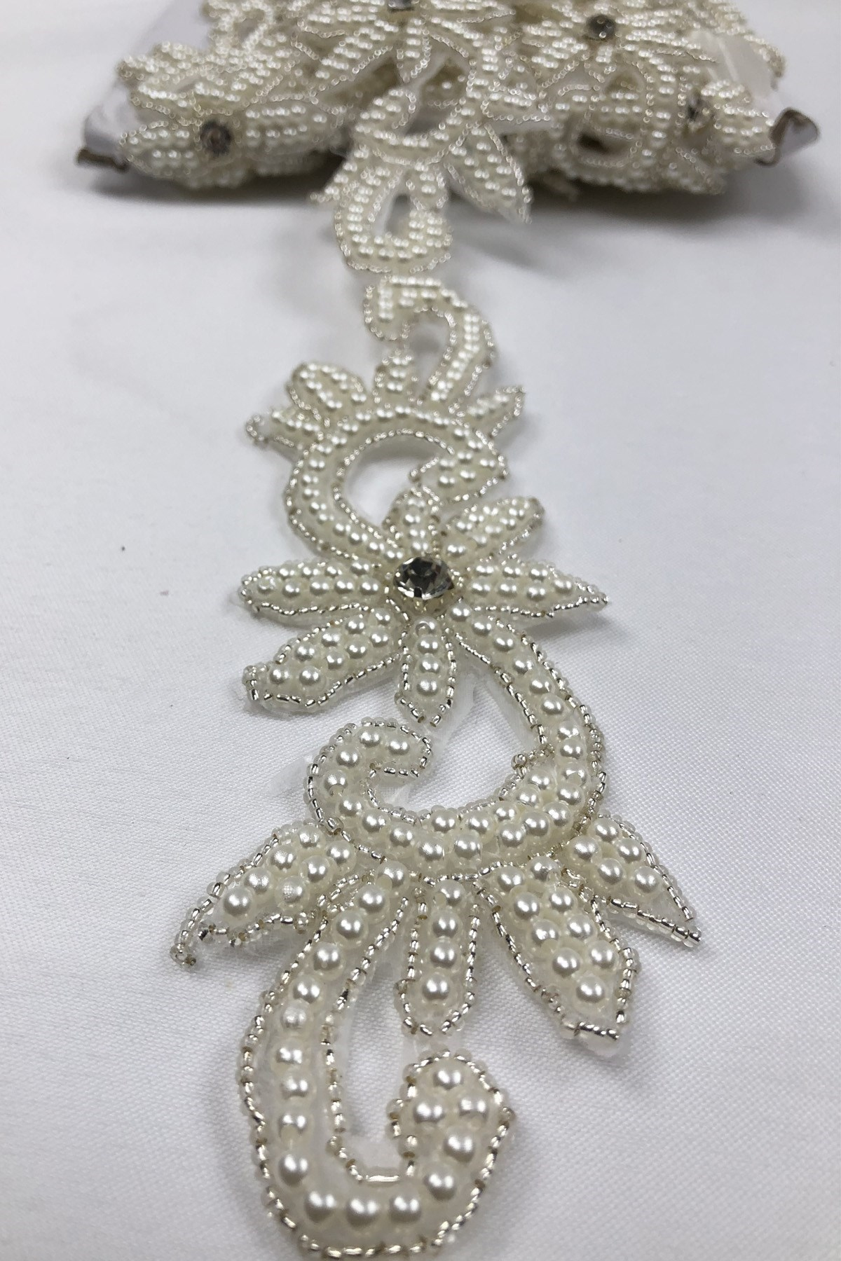 Krem İnci İşlemeli Ütüyle Yapışan Taşlı (TSA-115)