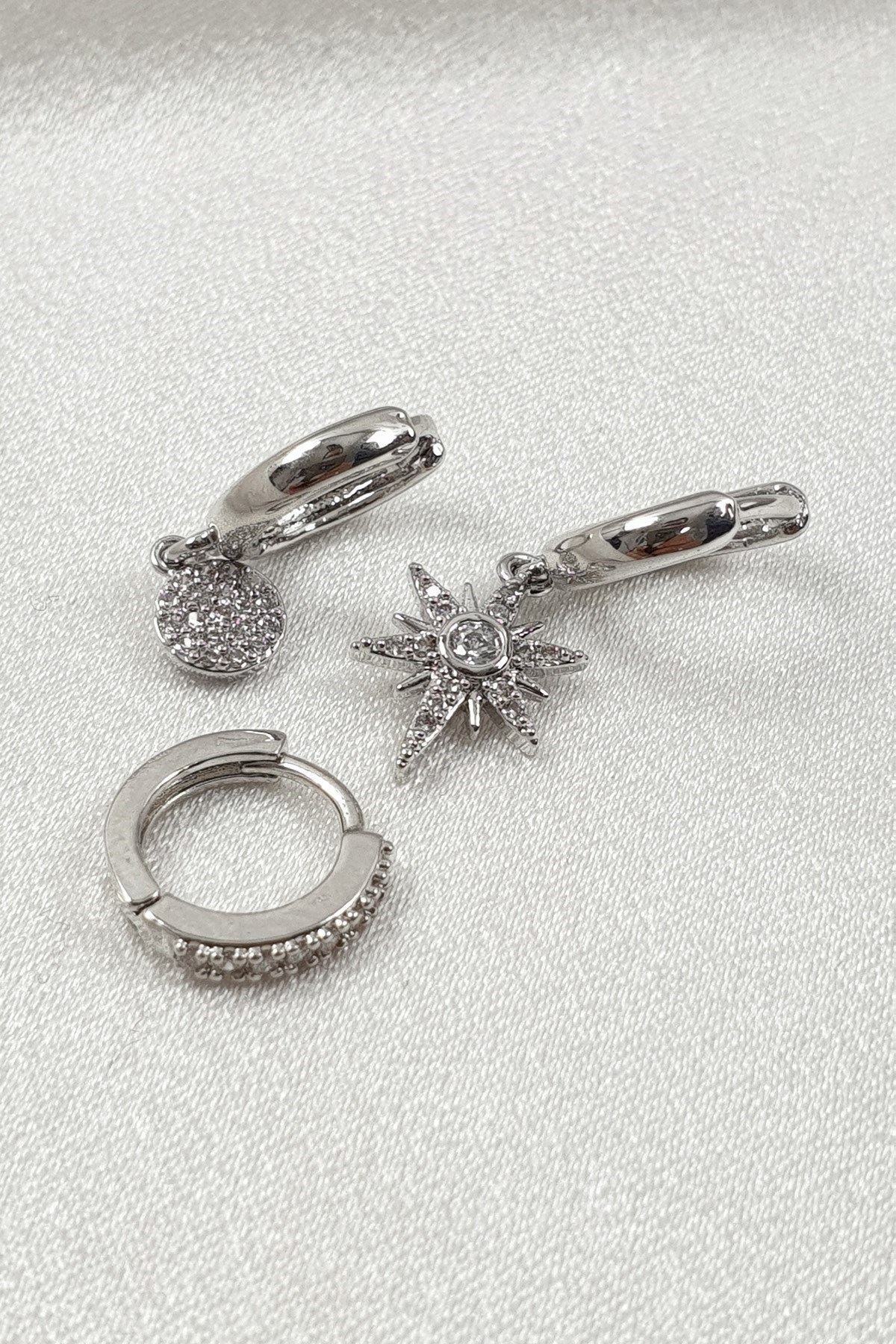 Kuzey Yıldızı Ve Damla Taş Detaylı Çoklu Zirkon Küpe