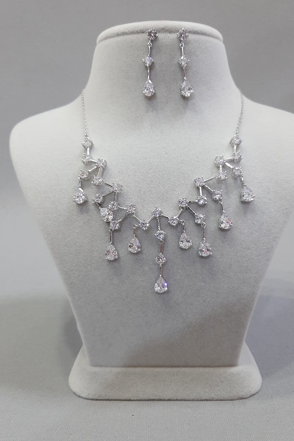 Metal Zeminli Damla Ziron Kolye ve Küpe Takımı (KLY-005)