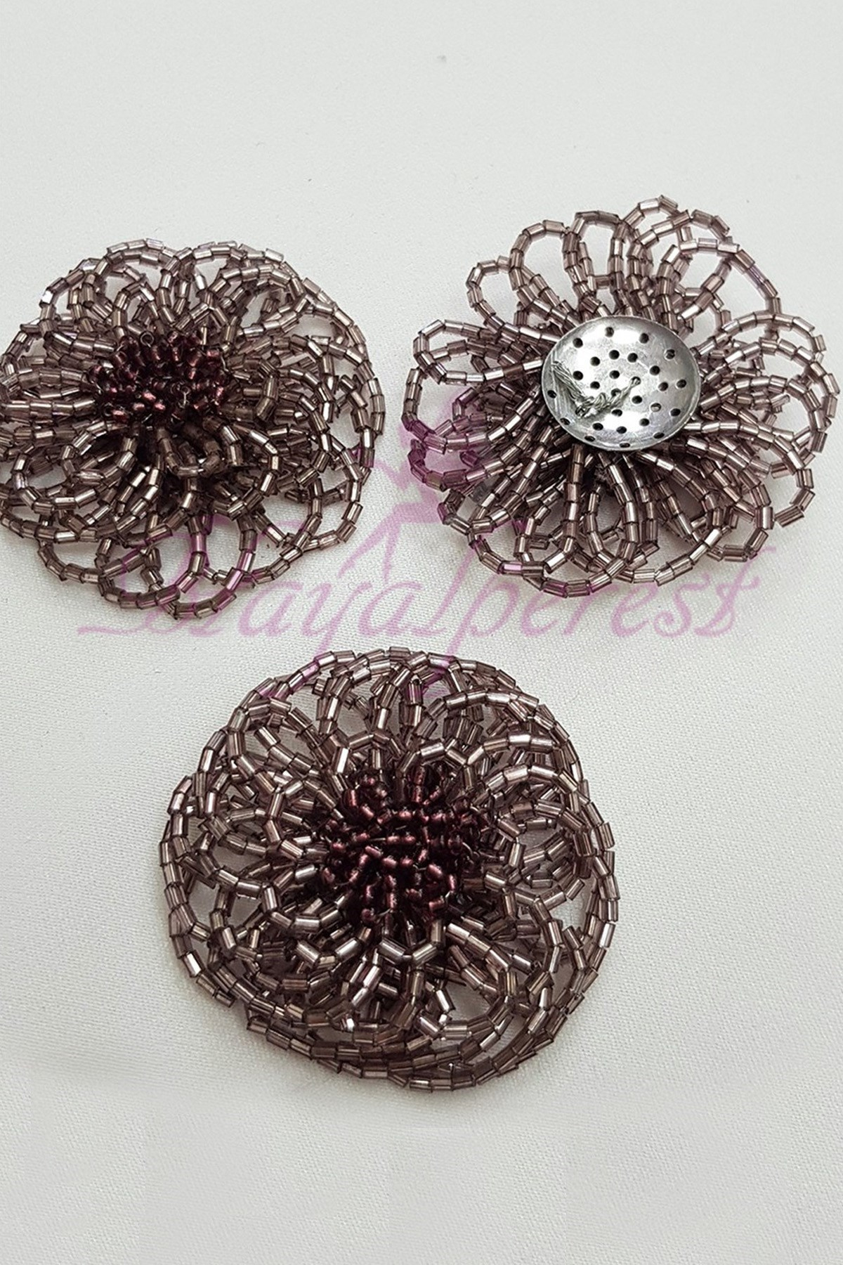 Mor Kesme Boncuklu Çiçek Broş (BRS1-00101)