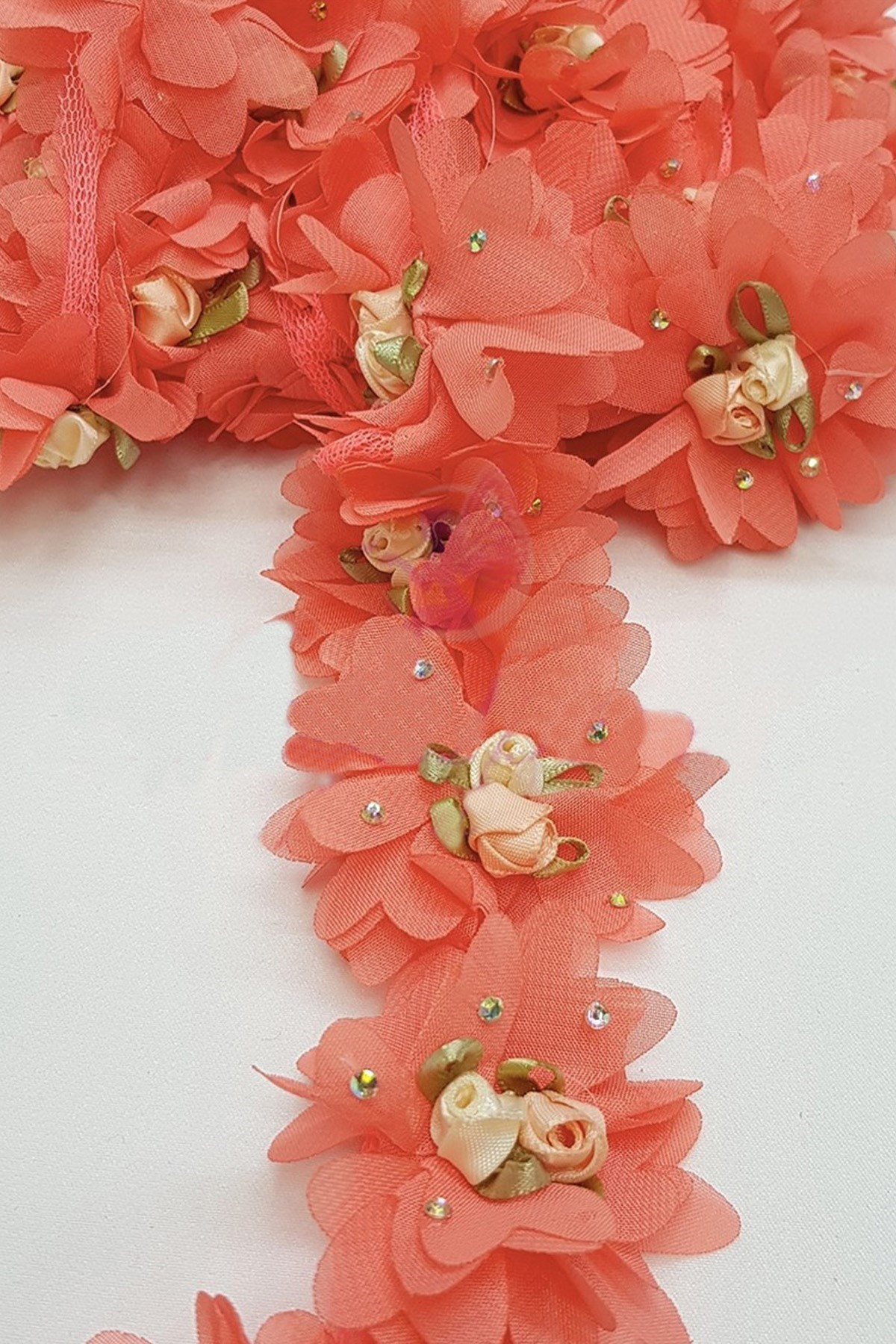 Taşlı ve Saten Güllü Şerit Şifon Çiçek Satışı 1 Mt Üzerinden Hesaplanır. 1 Mt De Ortalama 15 Adet Çiçek Bulunmaktadır.