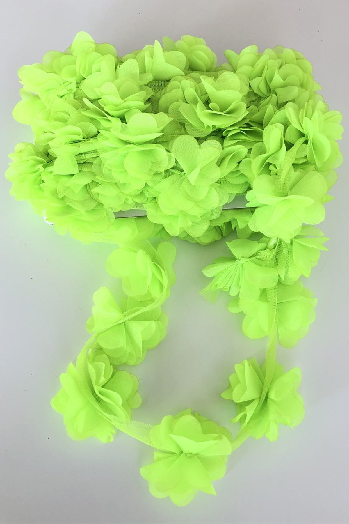 Neon Yeşil Lazer Kesim Şifon Tül Çiçek (LKCR-094)