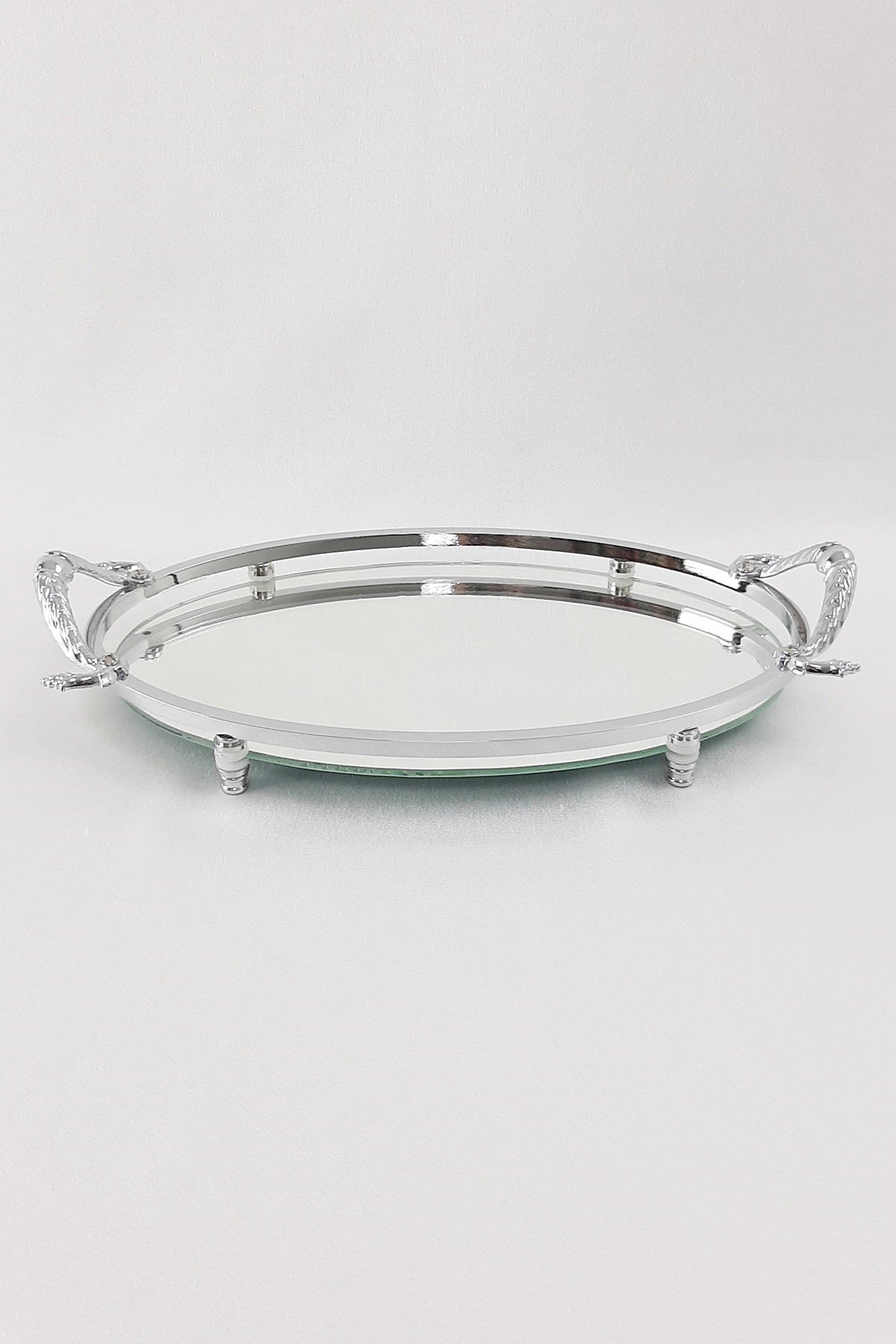 Oval Gümüş Kulplu Söz Nişan Tepsisi Birinci Sınıf İşçilik İle İmal Edilmiştir. En:30cm Boy:18cm Yükseklik:3cm 3mm Cam Ayna ve Prinç Kullanılarak Yapılmıştır Sıvı Teması İçin Uygun Değildir.