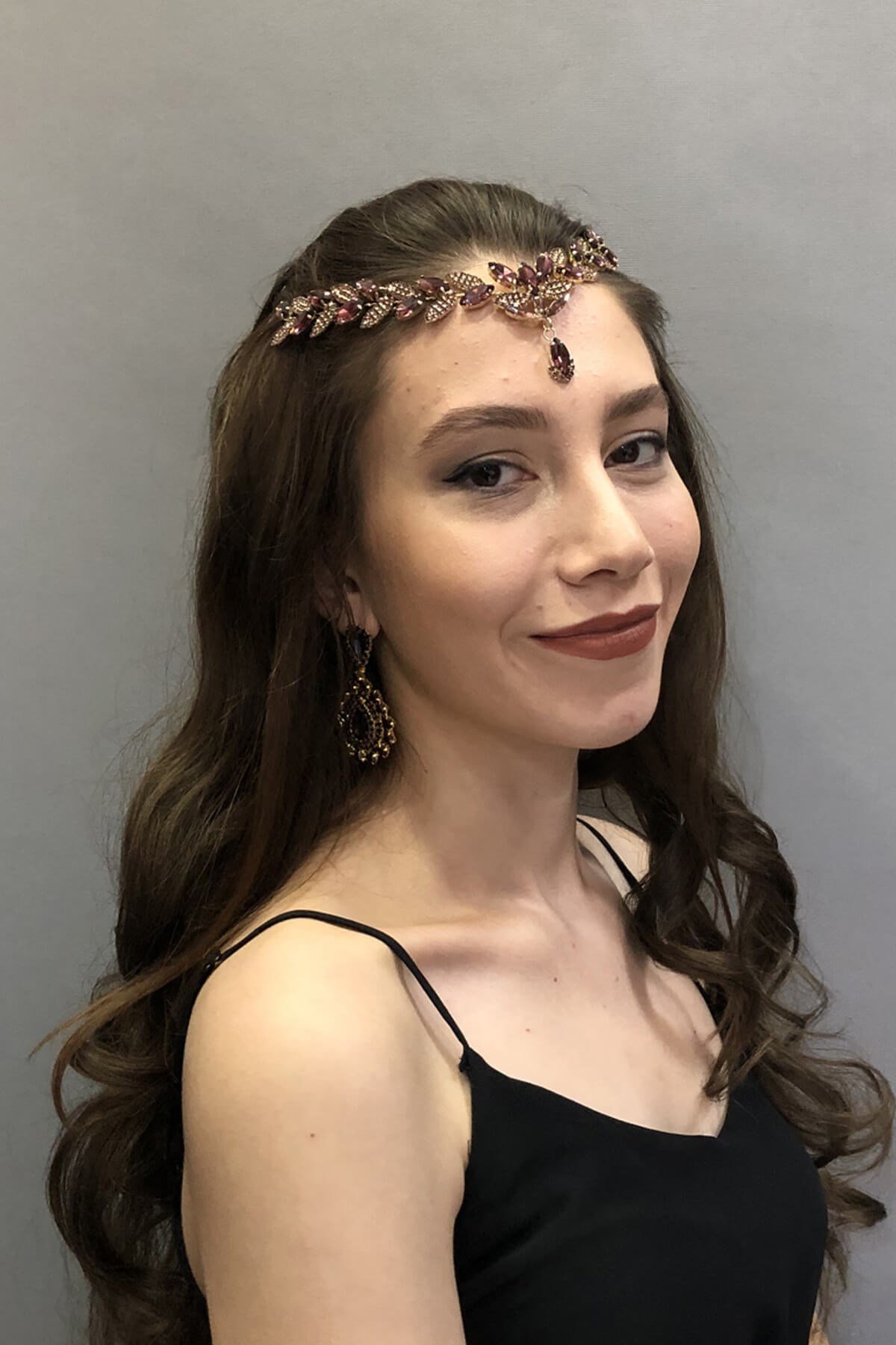 Pegasi Model Mürdüm Alıklık Saç Aksesuarı ve Küpe (TAC-395)