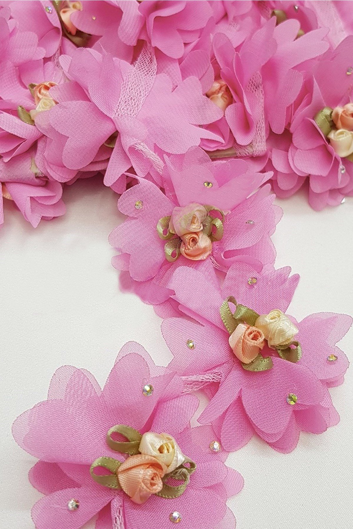 Taşlı ve Saten Güllü Şerit Şifon Çiçek Satışı 1 Mt Üzerinden Hesaplanır. 1 Mt De Ortalama 15 Adet Çiçek Bulunmaktadır.
