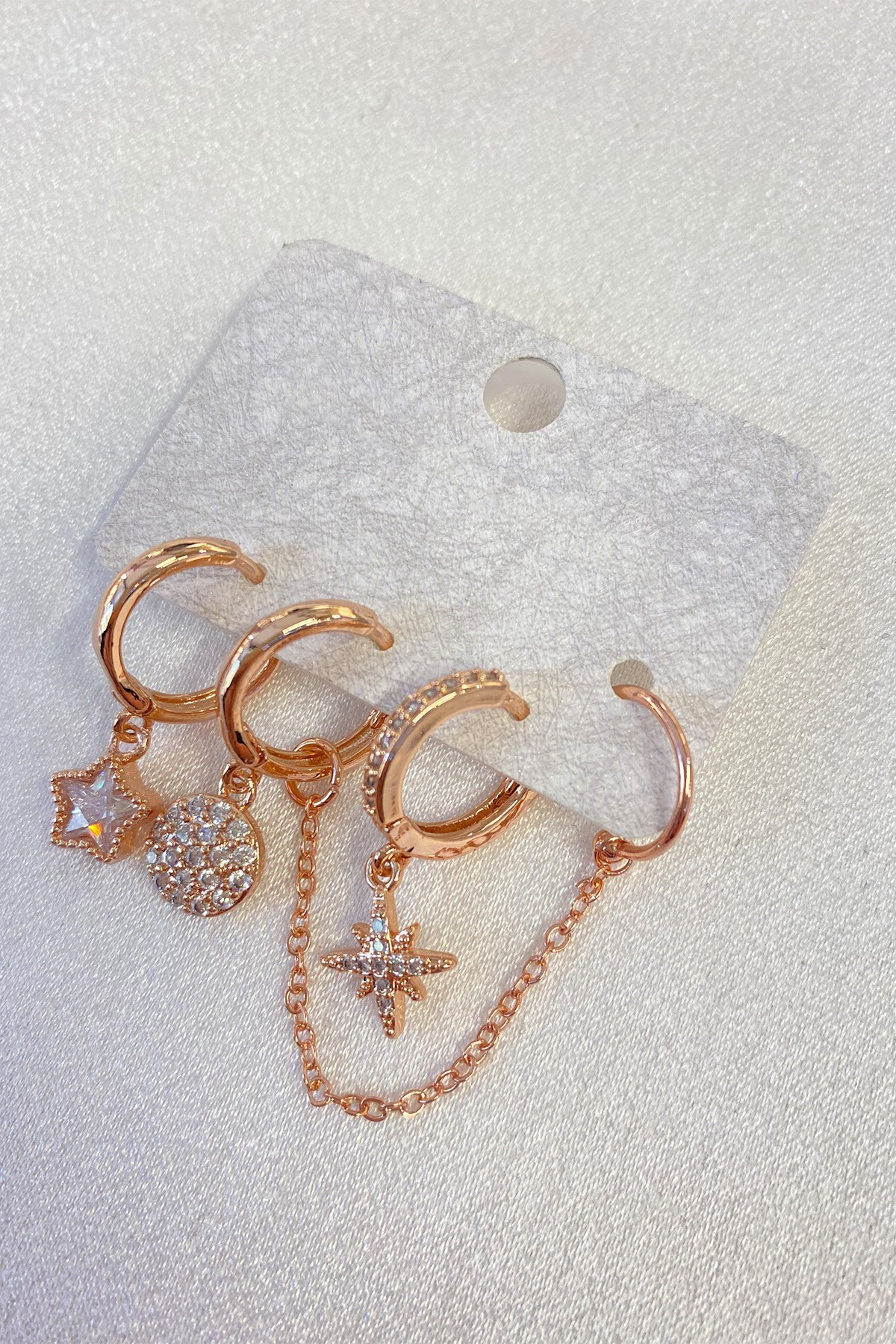 Rose Daire Yıldız Taşlı Zincir Çoklu Küpe (TCK298)