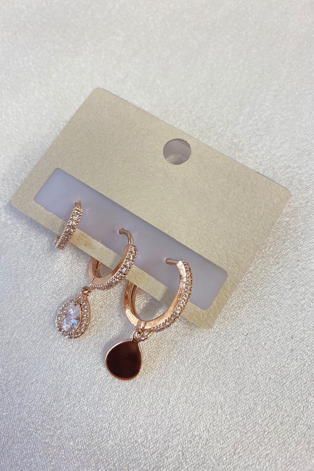 Rose Renk Siyah Damla Desenli Çoklu Küpe
