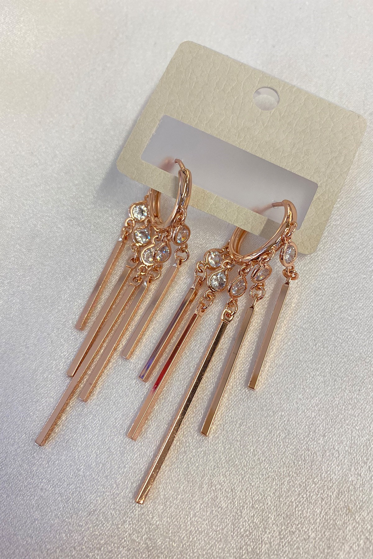 Rose Zirkon Taşlı Uzun Çubuk Sallantılı Küpe