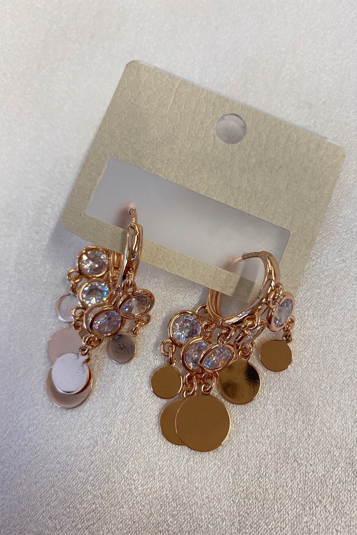 Rose Zirkon Taşlı Yuvarlak Sallantılı Küpe