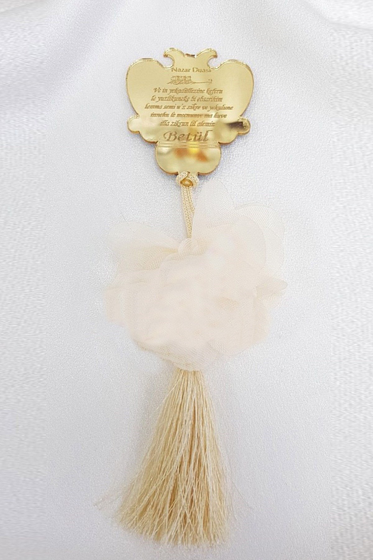 Sarı Püsküllü Altın Renk Pleksi Nikah Şekeri