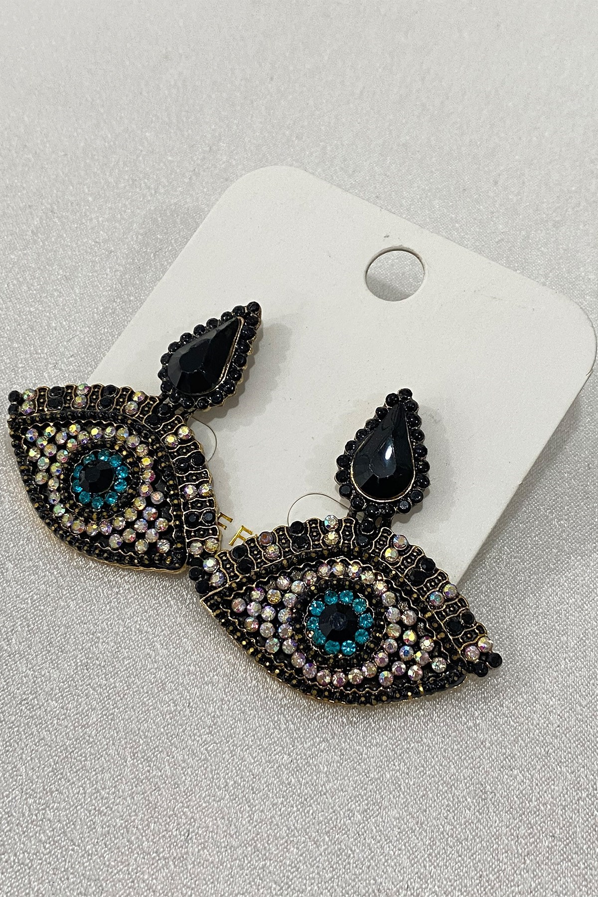 Siyah Damla İnce Taşlı Kirpikli Göz Küpe (TCK330)