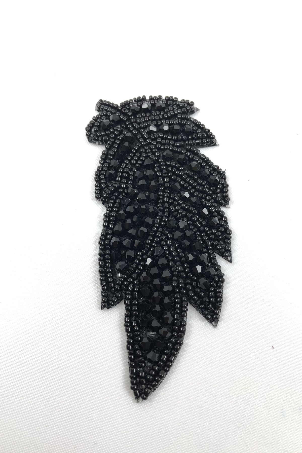 Yaprak Desenli Siyah Ütüyle Yapışan Taşlı Aplik