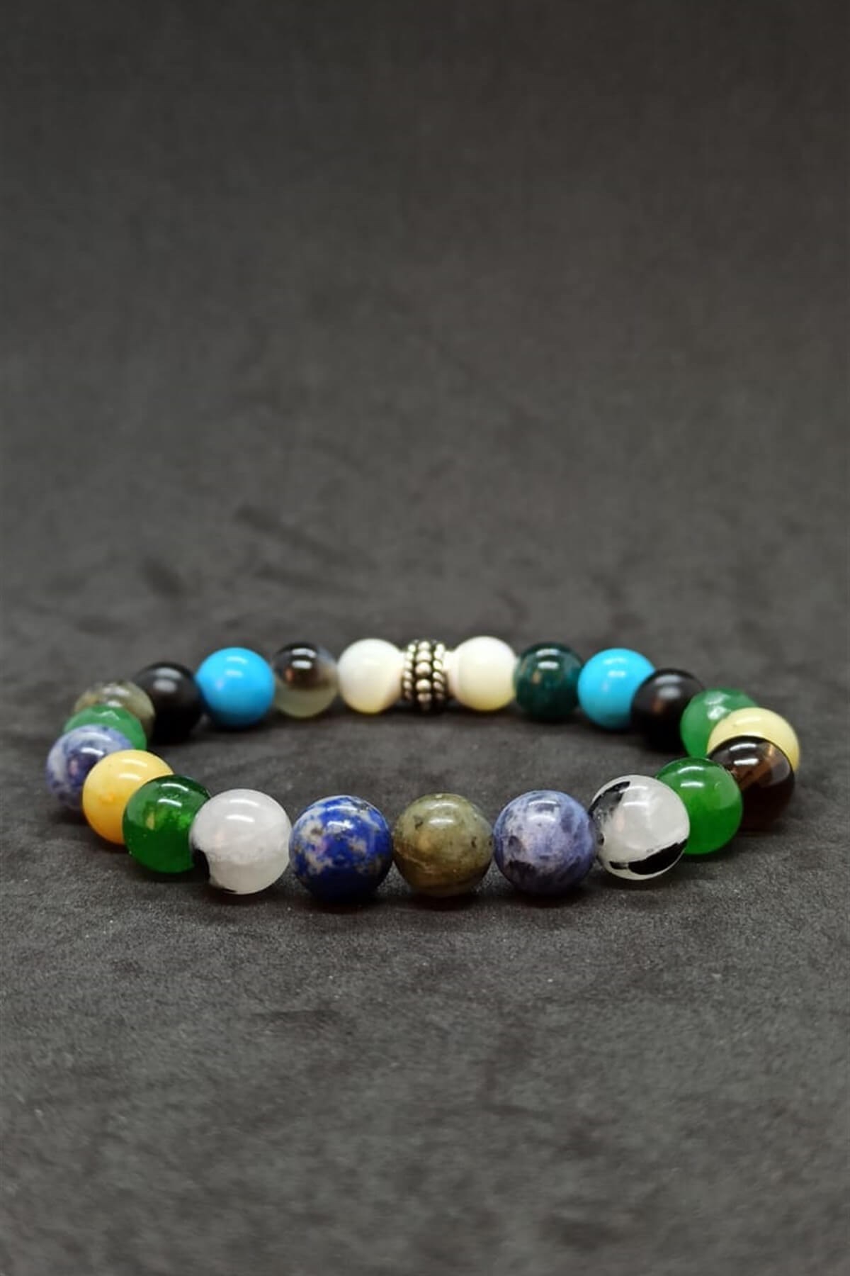 Yay Burcu Doğal Taş Bayan Bileklik Bu Üründe Kullanılan Taşlar Sodalit-Sedef-Oniks Apatit-Turkuaz-Labradorit Aventurin-Opal-Akik Dumanlı Kuvars-Yeşim Rutil Kuvars-Lapis Lazuli