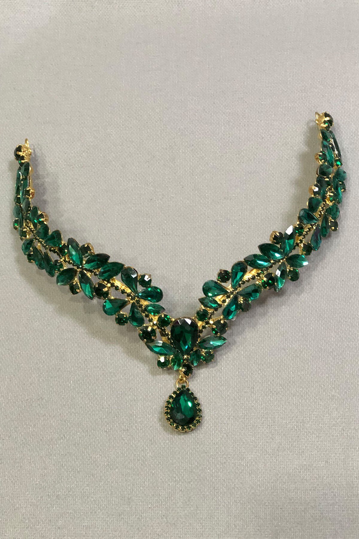 Yeşil Sarı Kristal Taşlı Alınlık Düğün ve Kınalarda Bindallı ve Kına Kıyafeti Üzerine Tercih Edilen Renkli Alınlık Saç Aksesuarı Modeli.