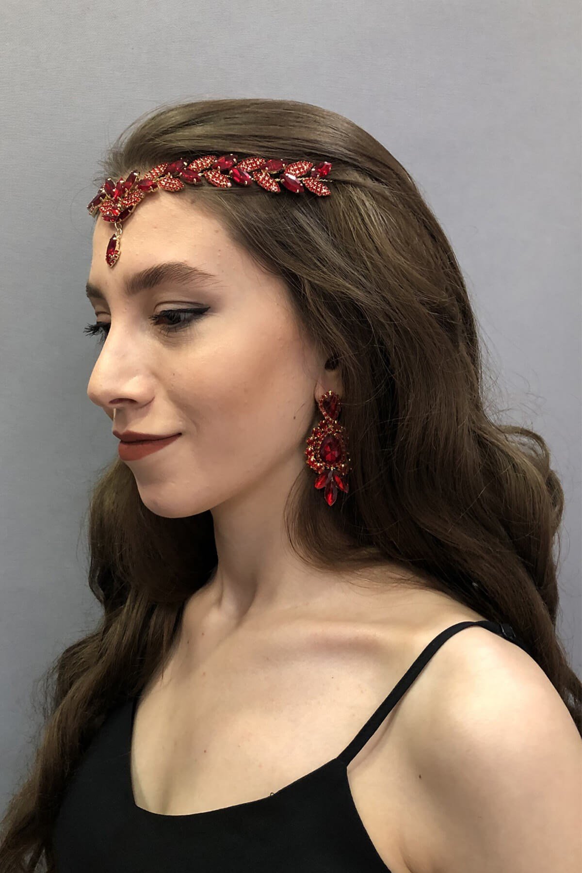 Zeta Model Kırmızı Alınlık Saç Aksesuarı ve Küpe (TAC-391)